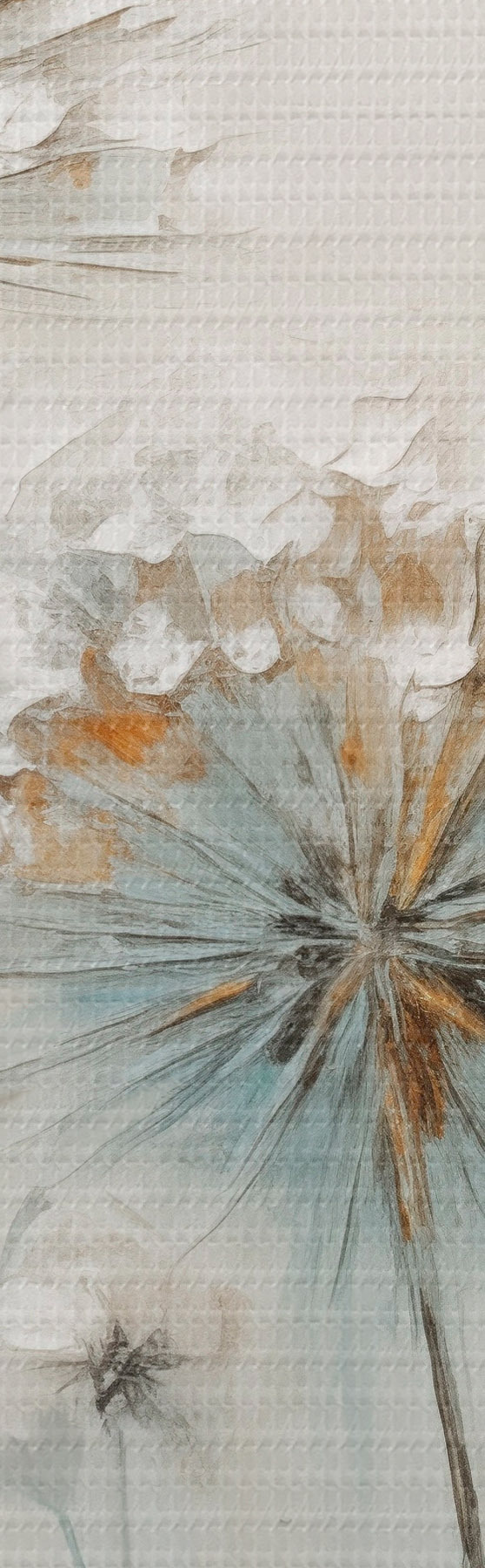 Peinture Style pictural texturé représentant des pissenlits sur un fond bleu et blanc doux Art. m30048