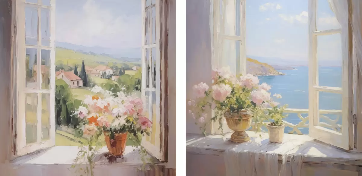 Peinture Un bouquet dans un vase près de la fenêtre Art. m30074