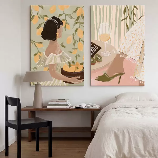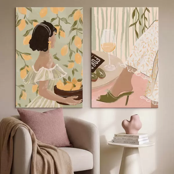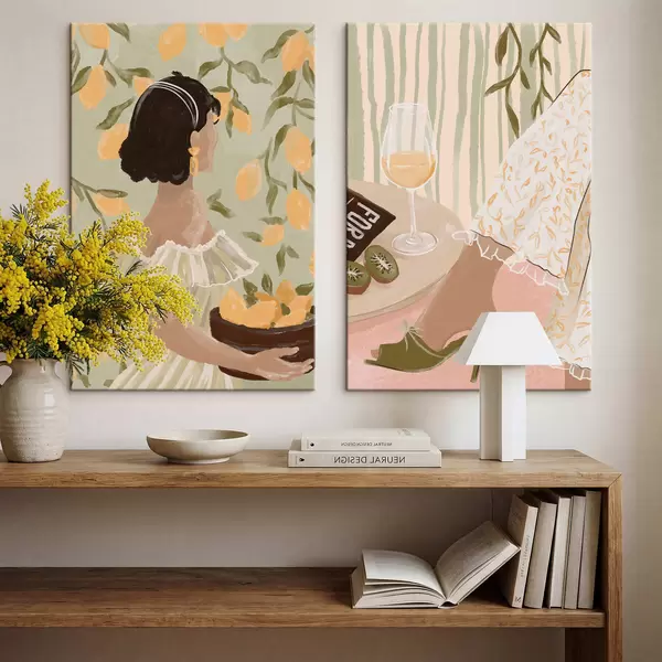 Peinture Femme avec des citrons et table avec verre Art. m30104