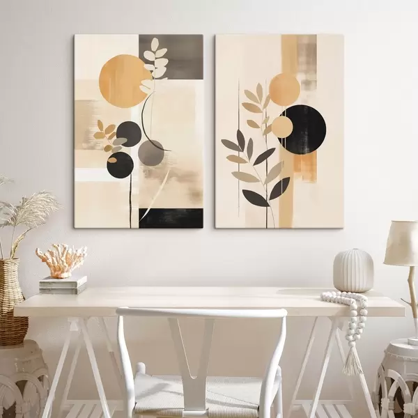 Peintures Abstractions avec des feuilles et des cercles m30133