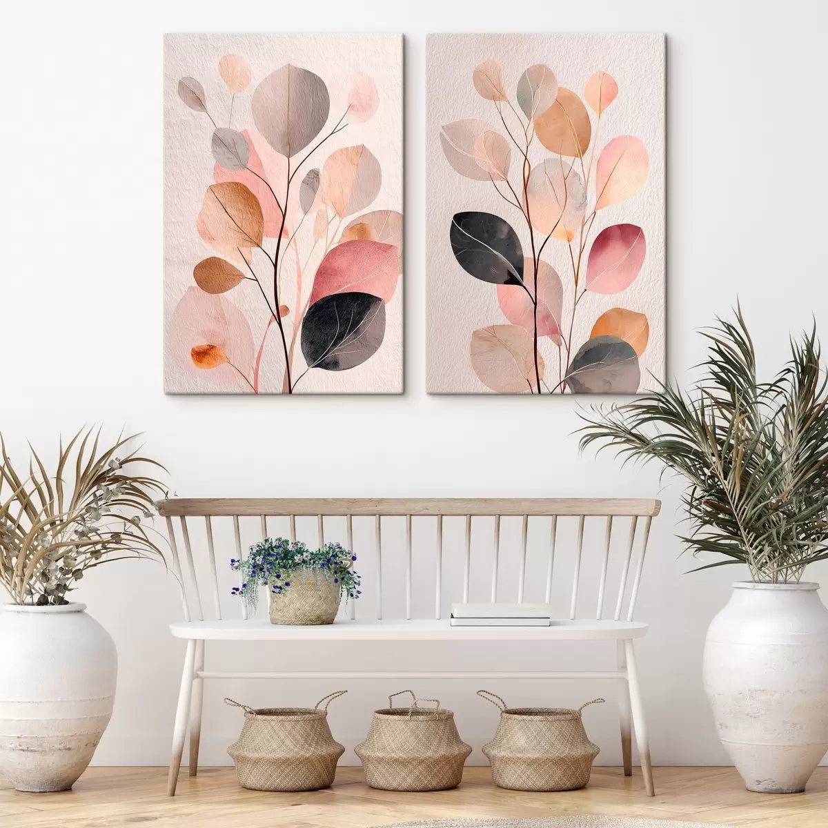 Peintures Composition botanique abstraite en deux parties, dans un style pictural contemporain m30135