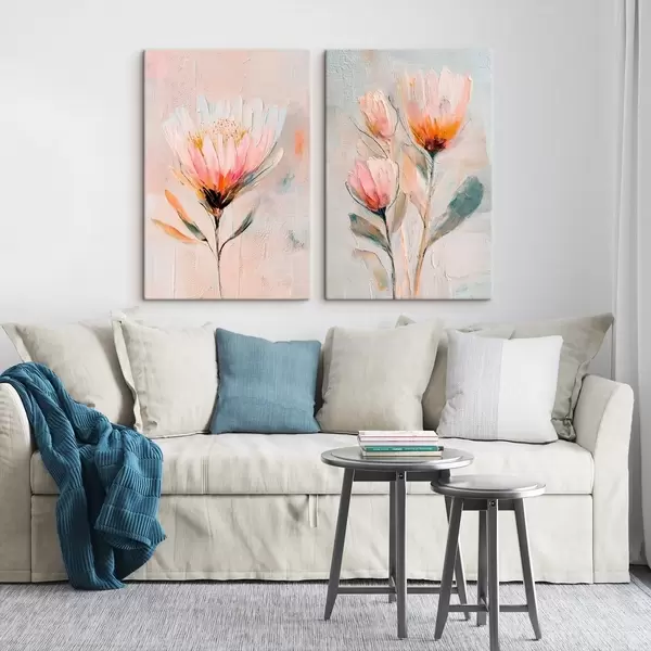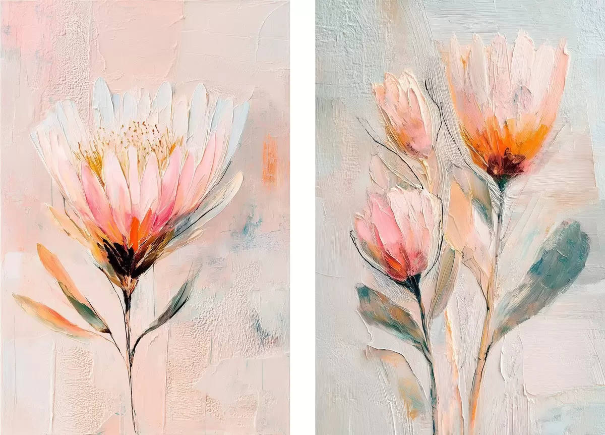 Peintures Composition florale aux tons pastel, avec des coups de pinceau volumineux, dans un style d'art contemporain m30140