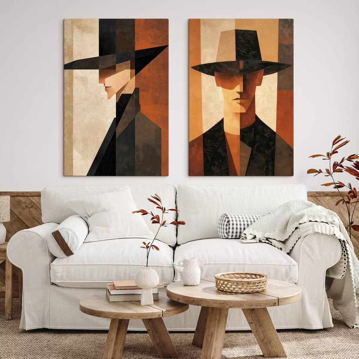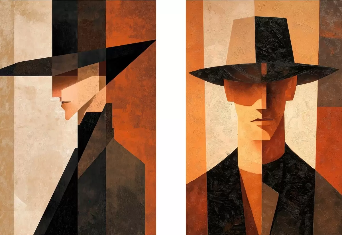 Peinture Portrait géométrique d'un homme coiffé d'un chapeau Art. m30157