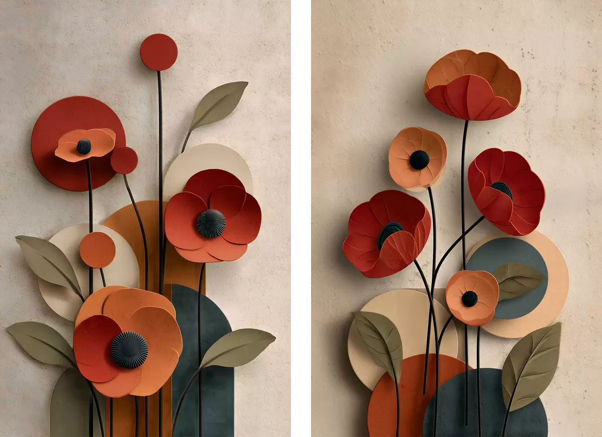 Peinture fleurs dans un style simplifié avec un effet de volume Art. m30178
