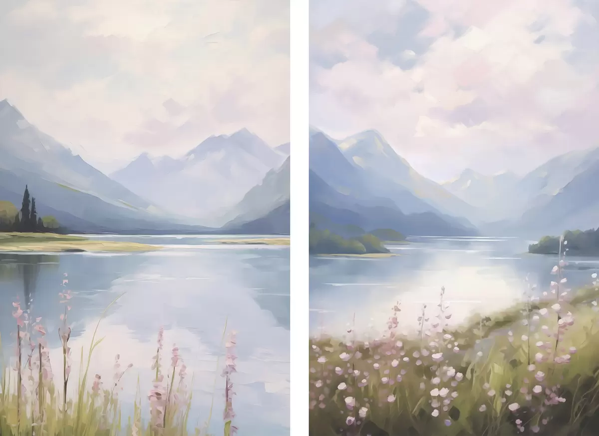 Peinture Lac près des montagnes imitation de peinture Art. m30248