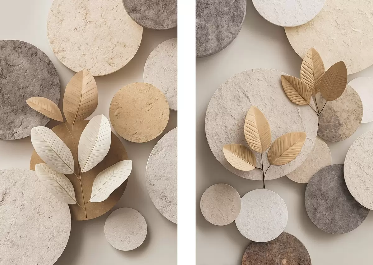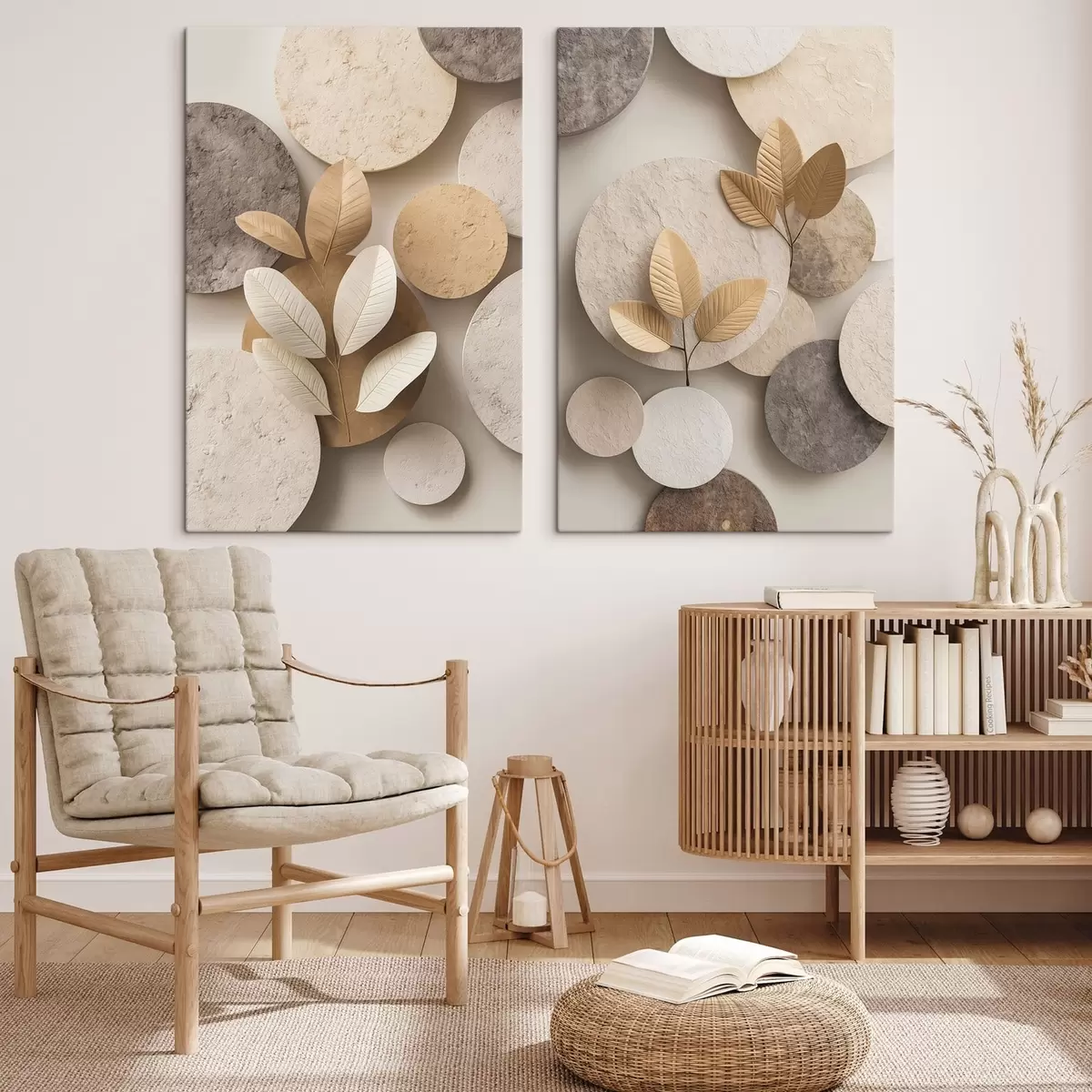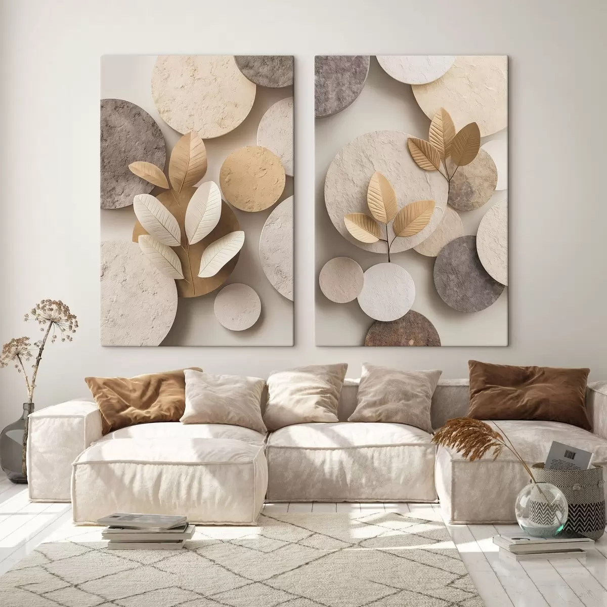 Peinture Compositions avec des feuilles et des cercles Art. m30292