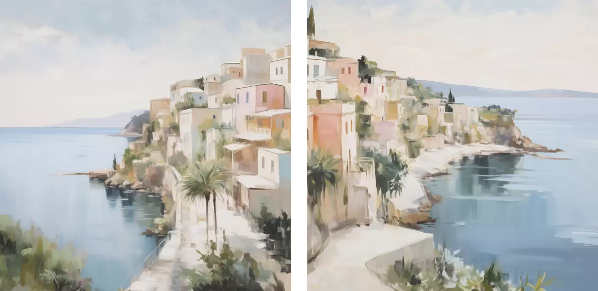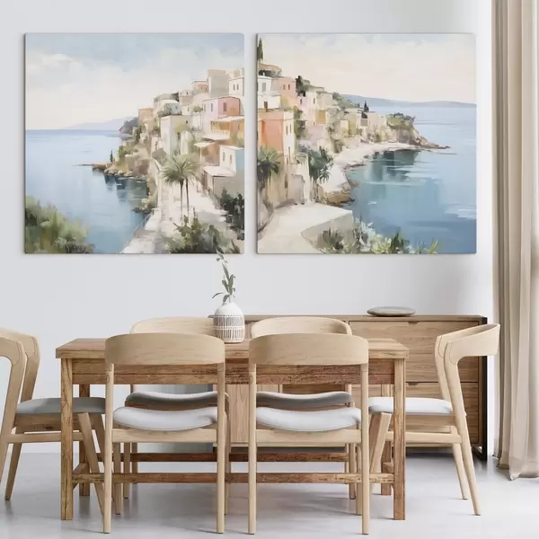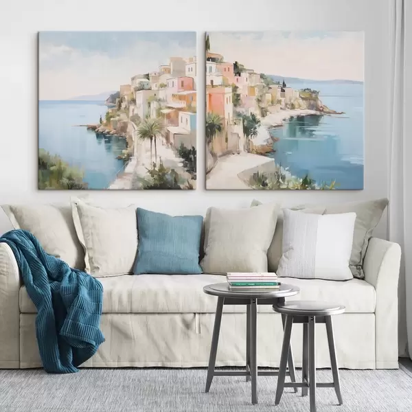 Peinture Paysage d'une ville au bord de la mer, imitation de peinture Art. m30295