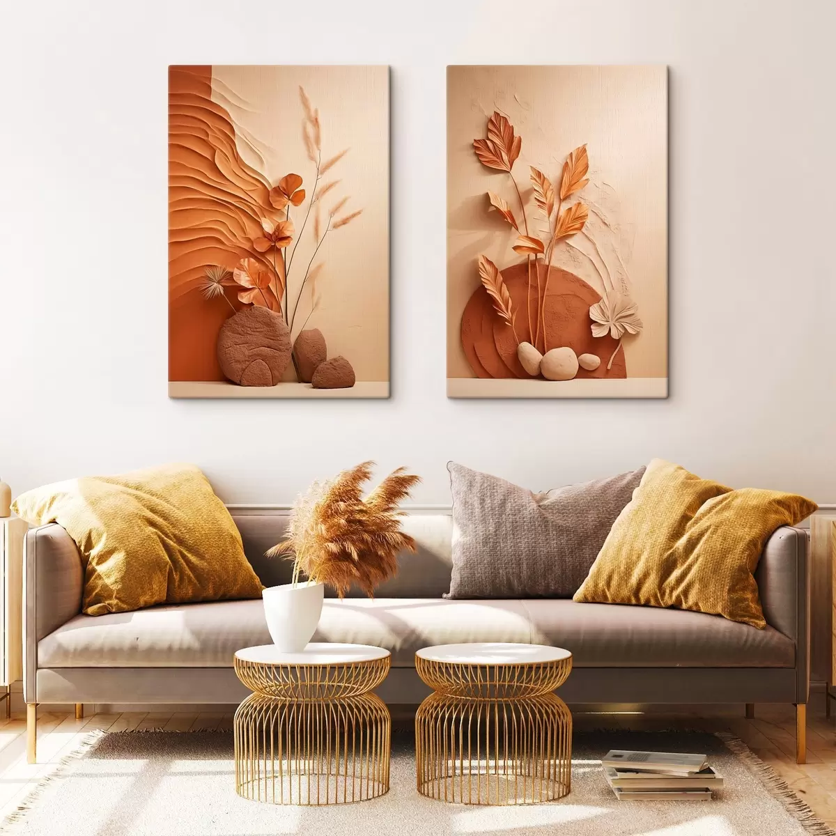Peinture Une œuvre minimaliste composée de fleurs séchées et d'herbe de la pampa, sur un fond texturé Art. m30320