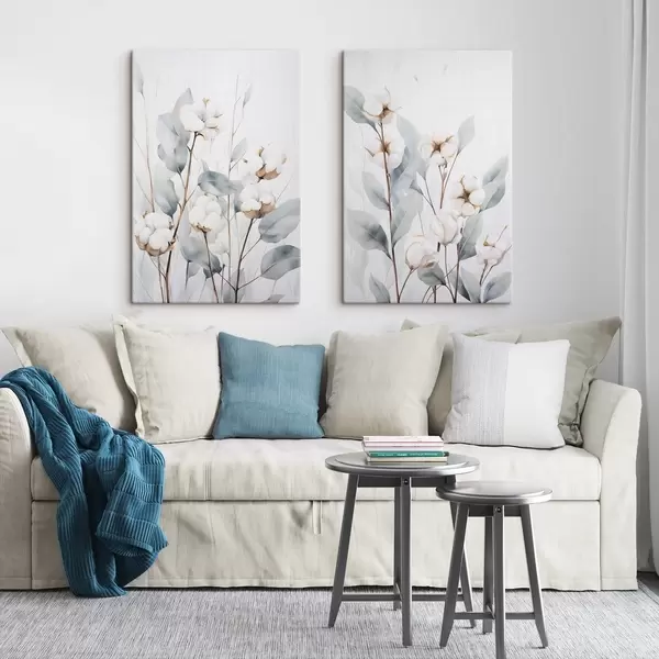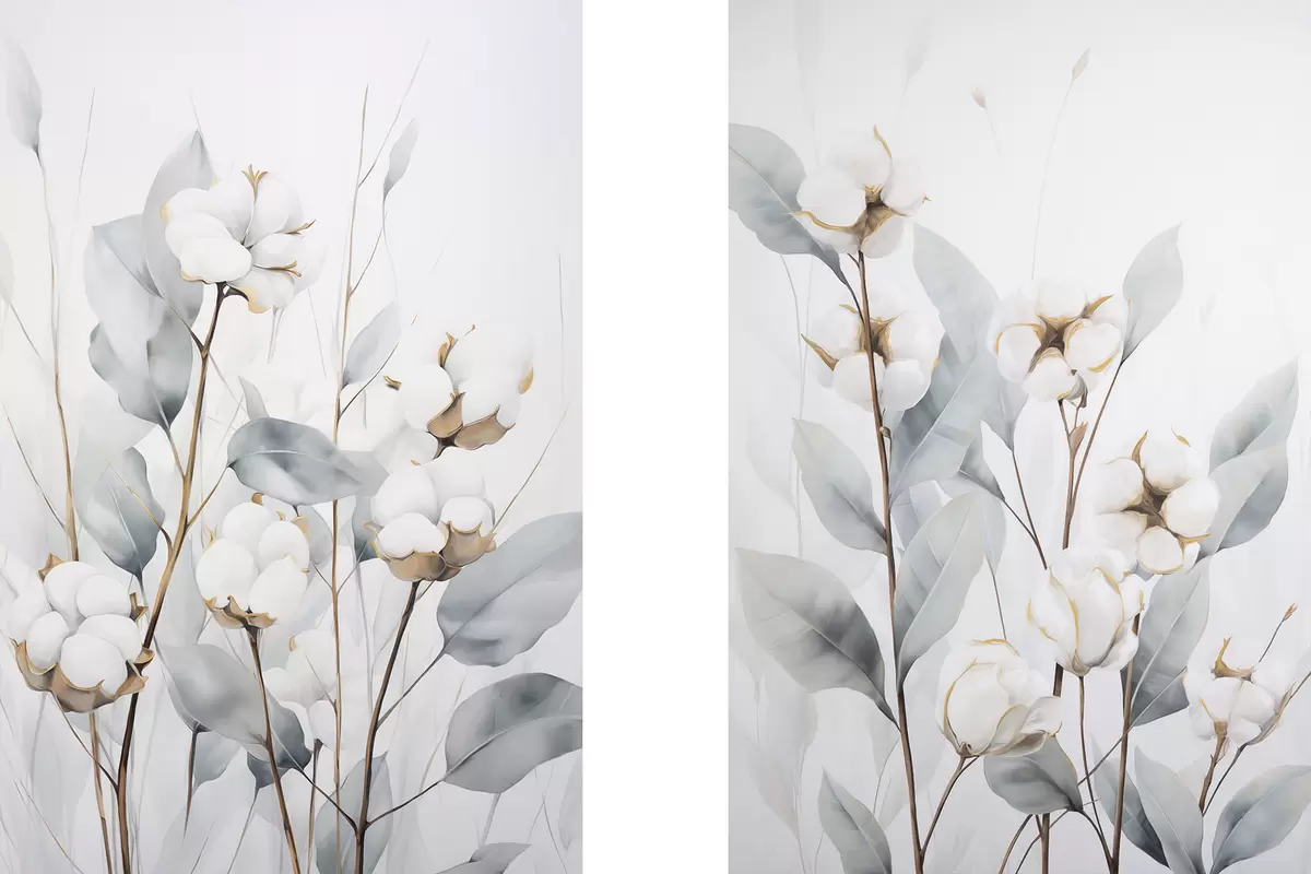 Peintures Un cotonnier blanc aux feuilles bleu-vert pâle sur un fond clair m30322