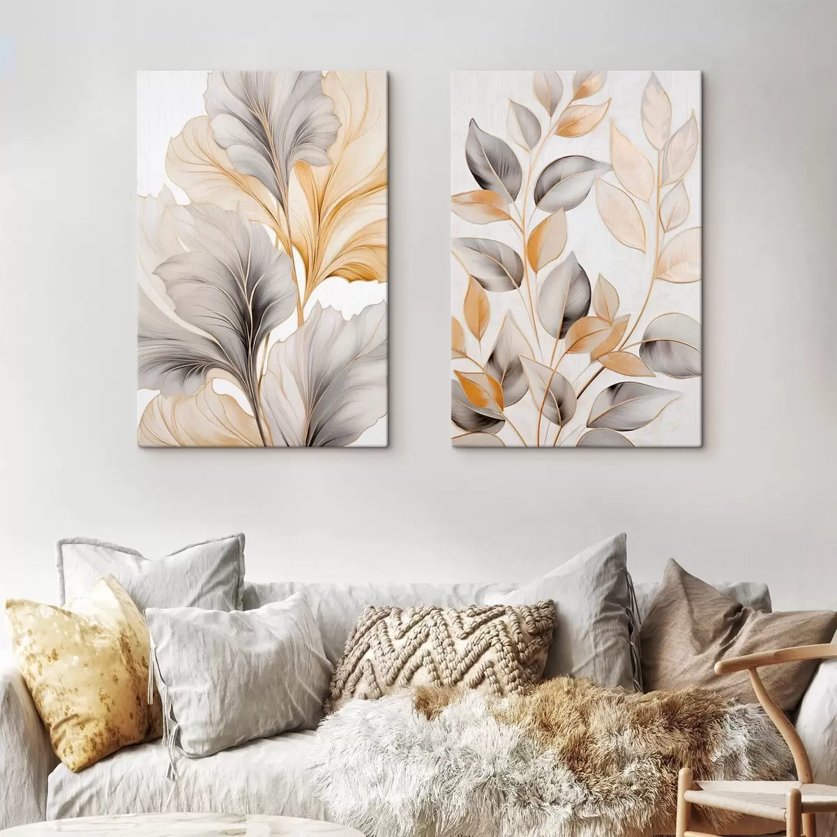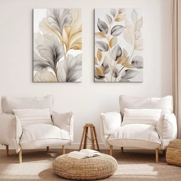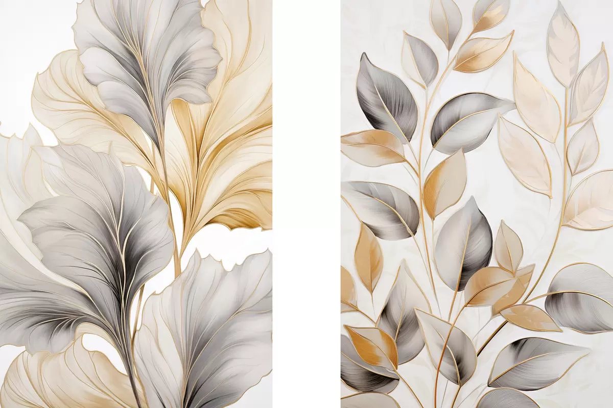 Peintures De grandes feuilles translucides dans des tons de gris et de jaune m30323