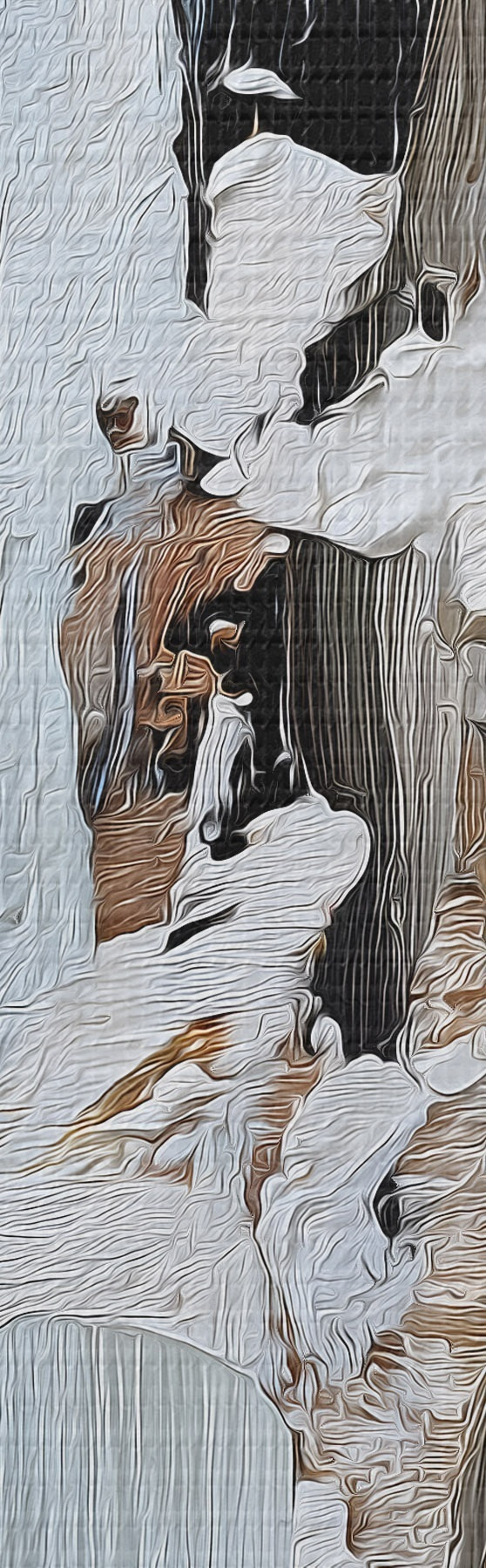 Pour tendre la toile sur des châssis sans endommager l'image, nous utilisons une image miroir.
