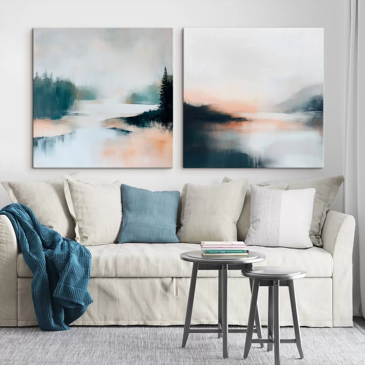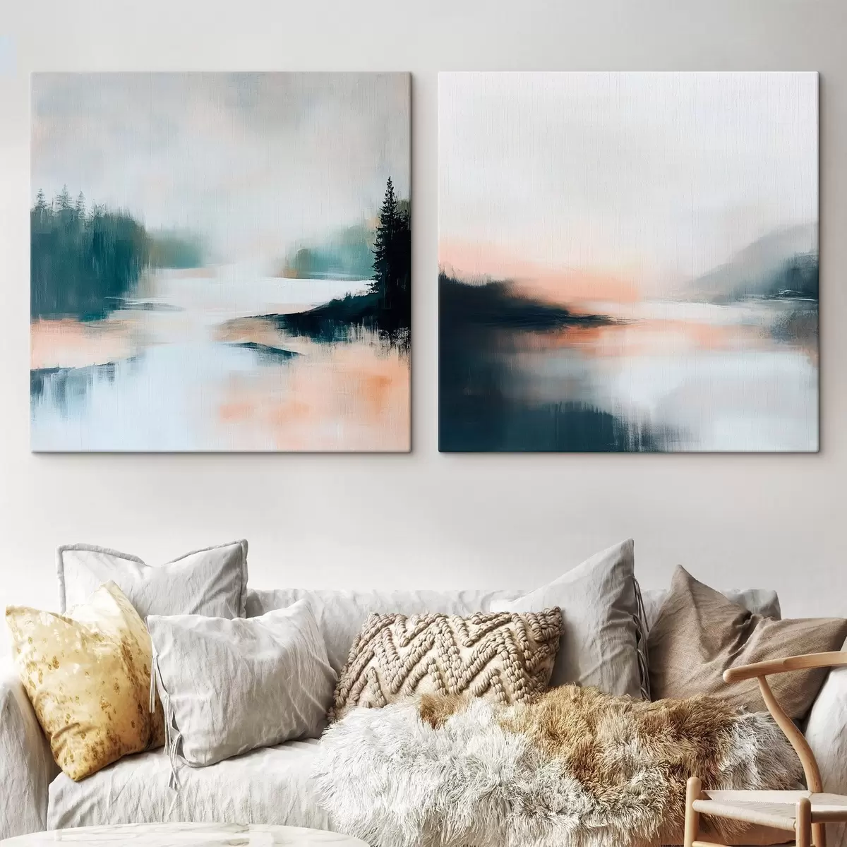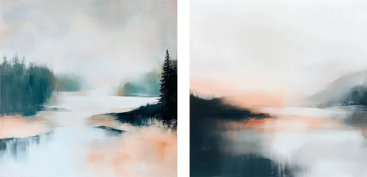 Peinture Paysage brumeux avec des conifères et un lac, dans un style pictural contemporain Art. m30357