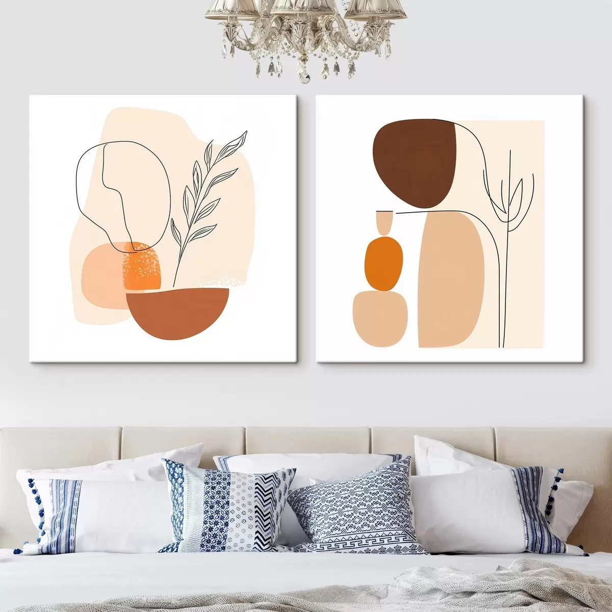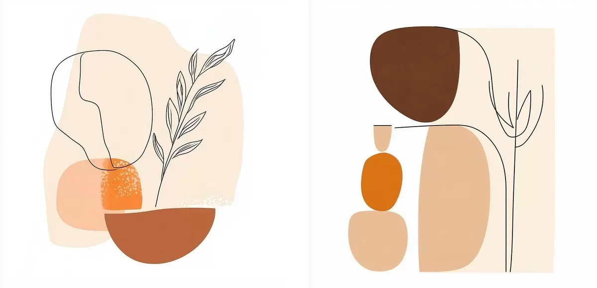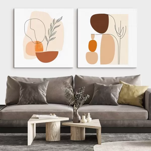Peintures Fleurs abstraites dans une palette de tons beiges et corail chaleureux : illustration de style minimaliste m30362