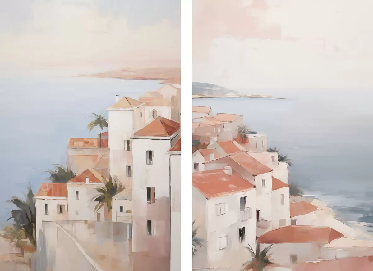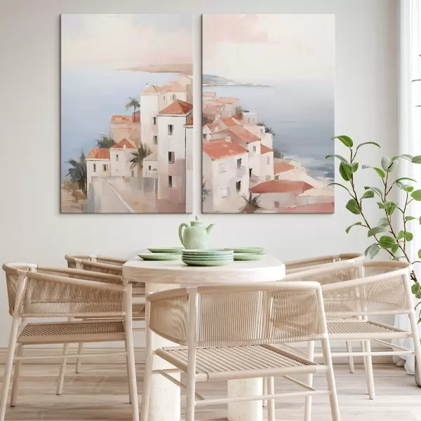 Peinture Paysage d'une ville au bord de la mer Art. m30406