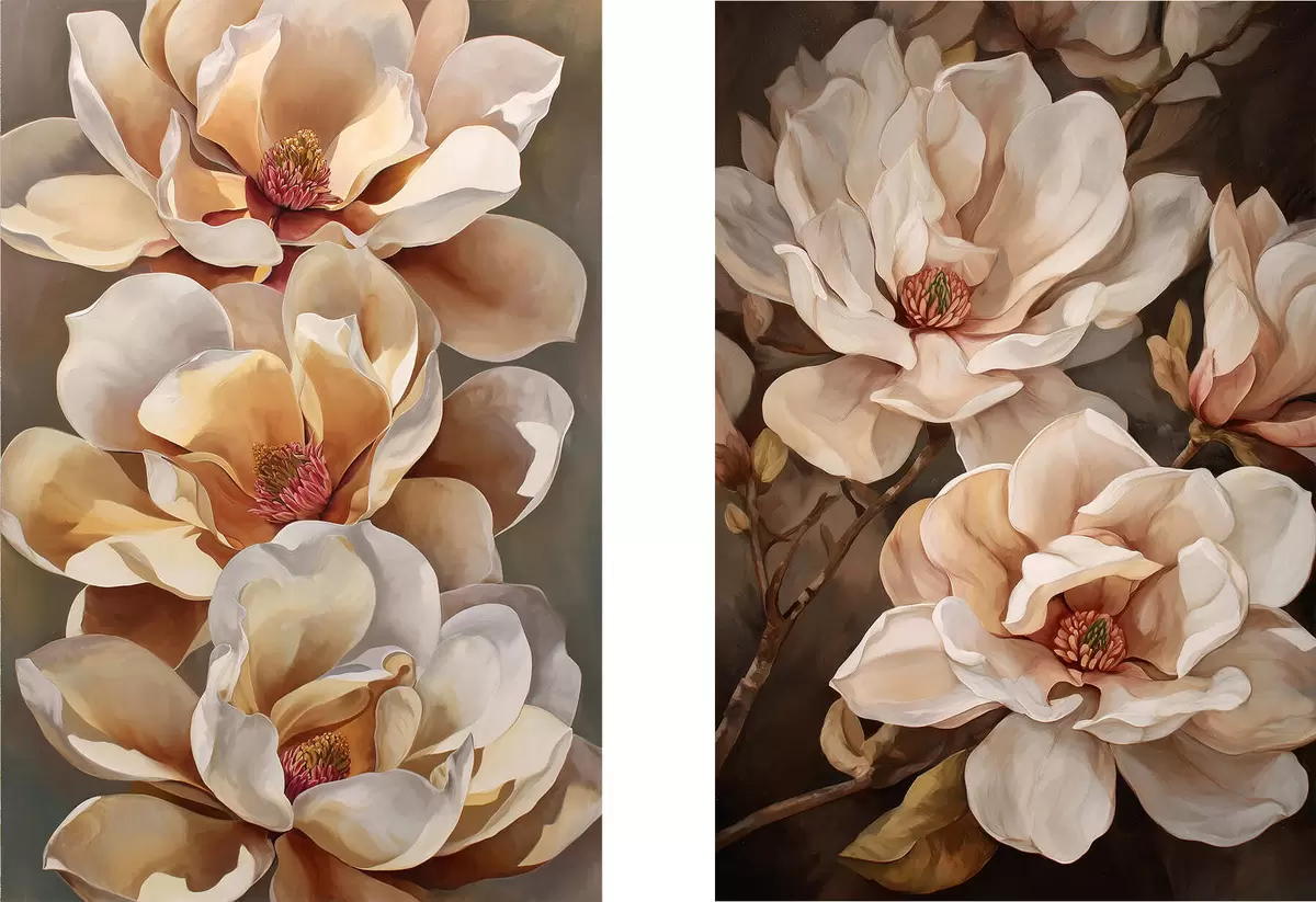 Trois types de matériaux peuvent être commandés : Economic Canvas - matériau dense et durable pour l'impression numérique, identique à la toile de peintre, surface imperméable, reproduction réaliste des détails, matériau à grain moyen. Premium Canvas - la texture ressemble à celle d'une toile de peintre (petits fils entrelacés). Reproduction douce et détaillée de l'image sur une surface mate. Eco-Premium - tissu 100 % coton de haute qualité. Grâce aux fibres naturelles de coton, le matériau est durable et résistant à l'usure. Excellente reproduction des couleurs et des détails.