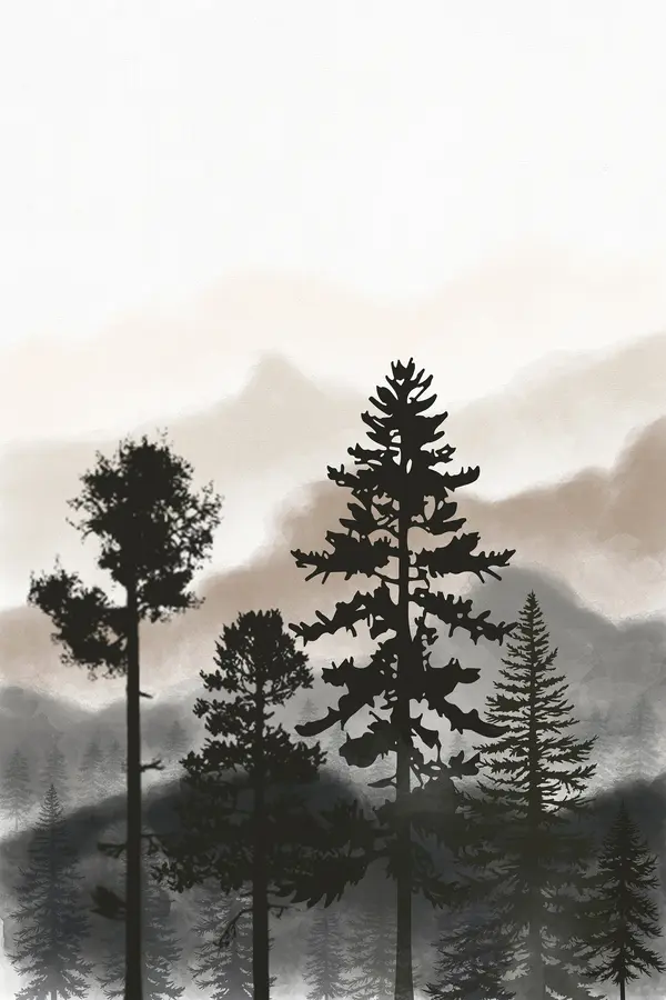 Peinture Silhouettes d'arbres dans un paysage brumeux Art. s36605v1