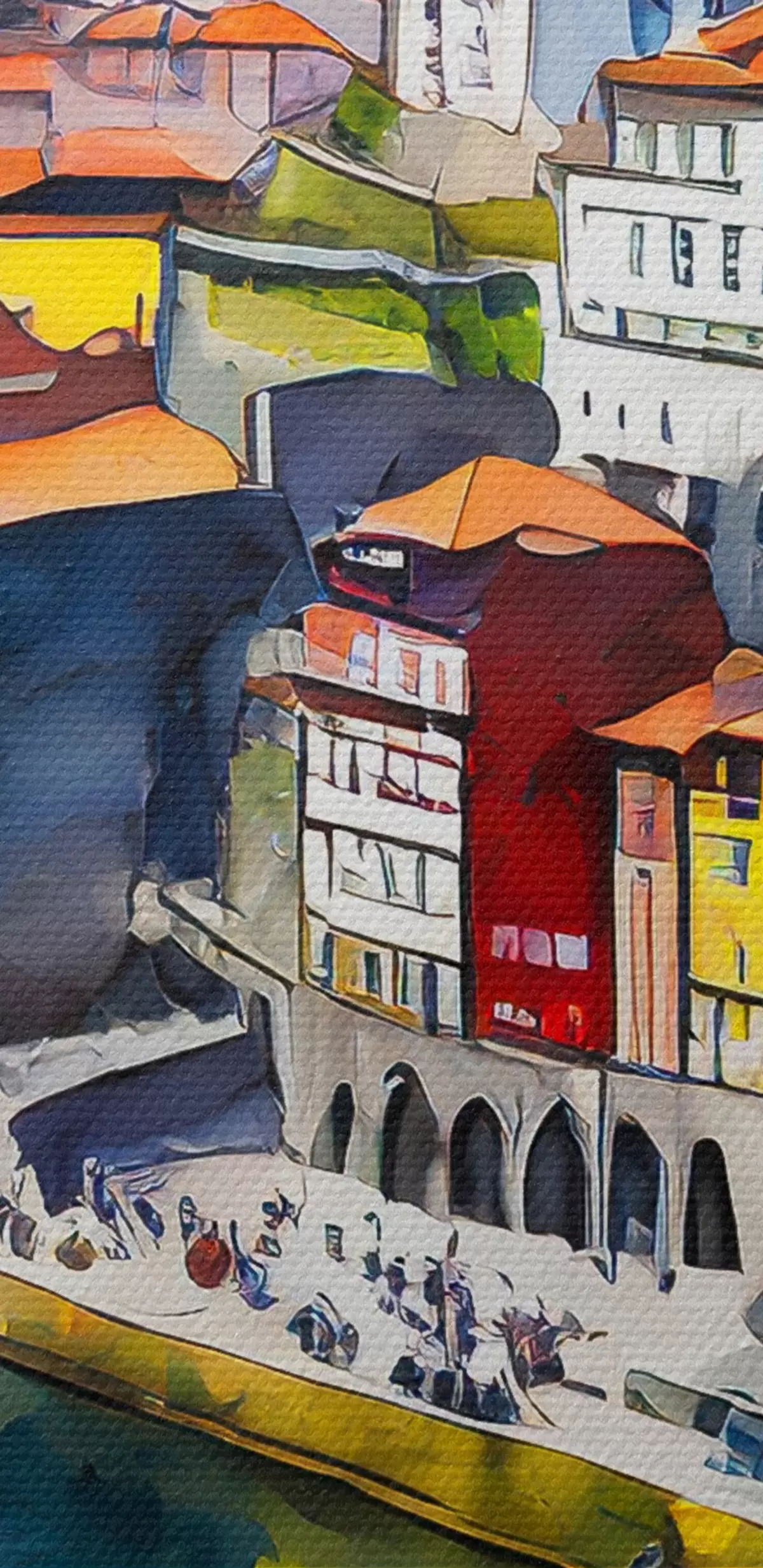 Peinture Charmant paysage urbain au bord de la rivière en couleur Art. s36680