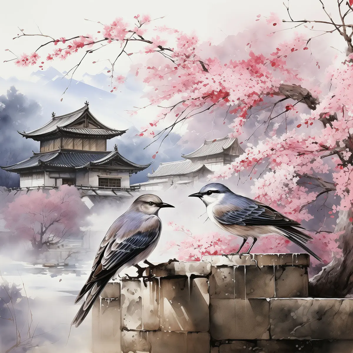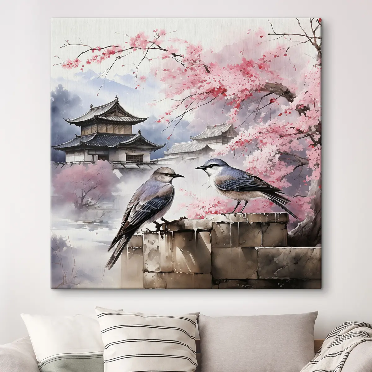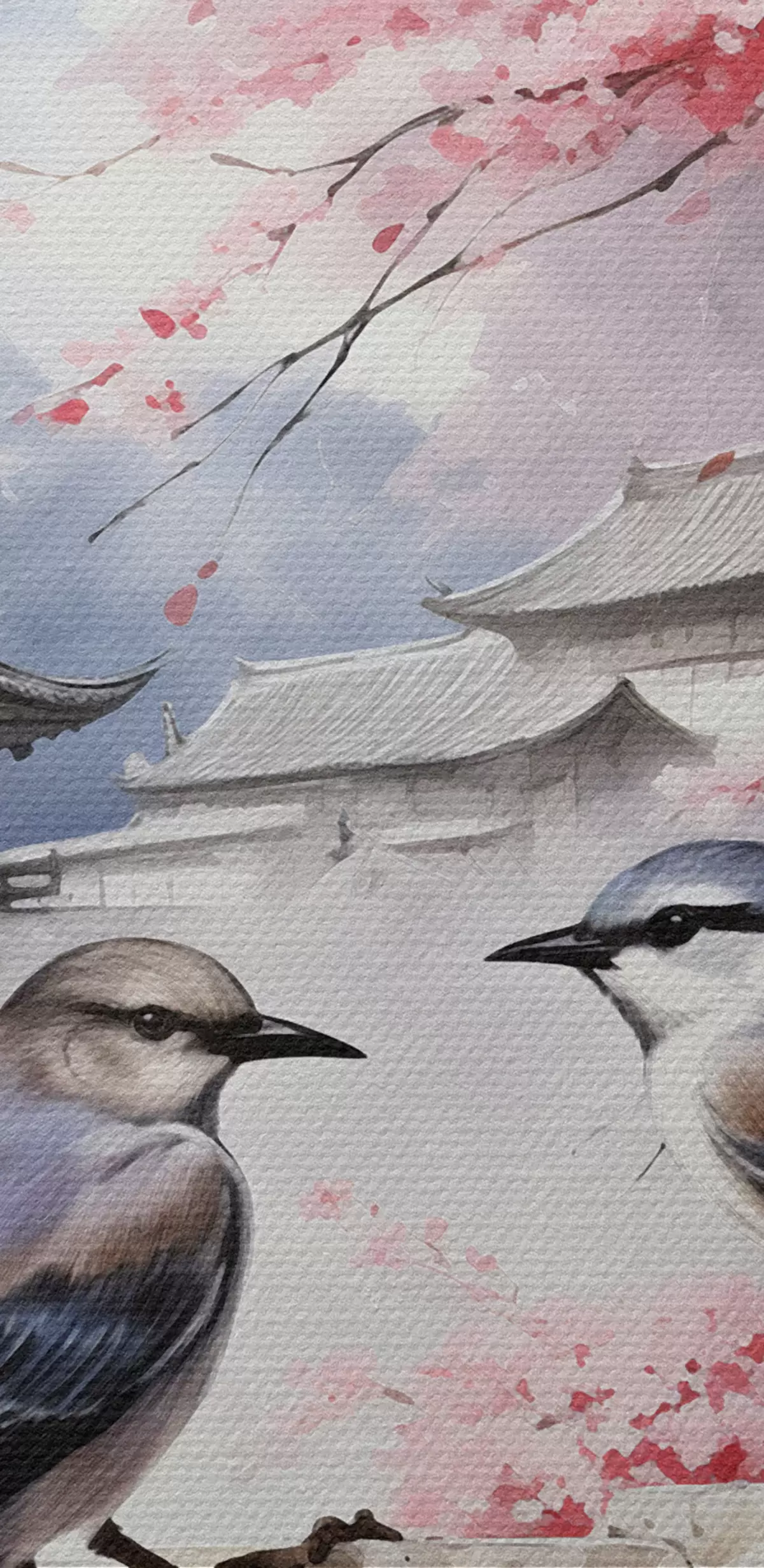 Peinture Oiseaux sereins sous les arbres en fleurs Art. s36815