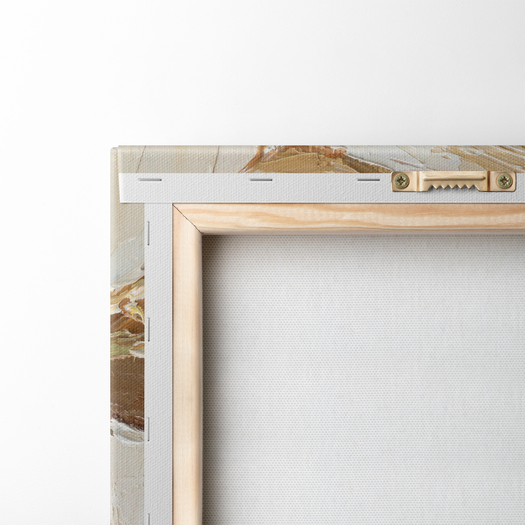 Nous vendons des tableaux sur châssis - il s'agit d'un cadre en bois sur lequel la toile est tendue. Ce tableau n'a pas besoin d'être encadré ; vous pouvez l'accrocher directement au mur.