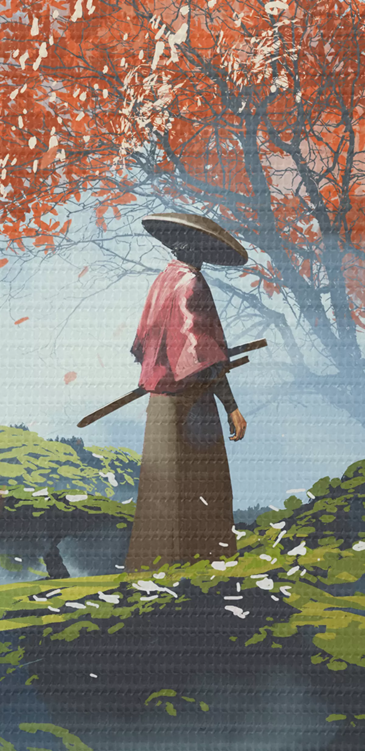 Peinture Guerrier dans un paysage serein et vibrant Art. s37105