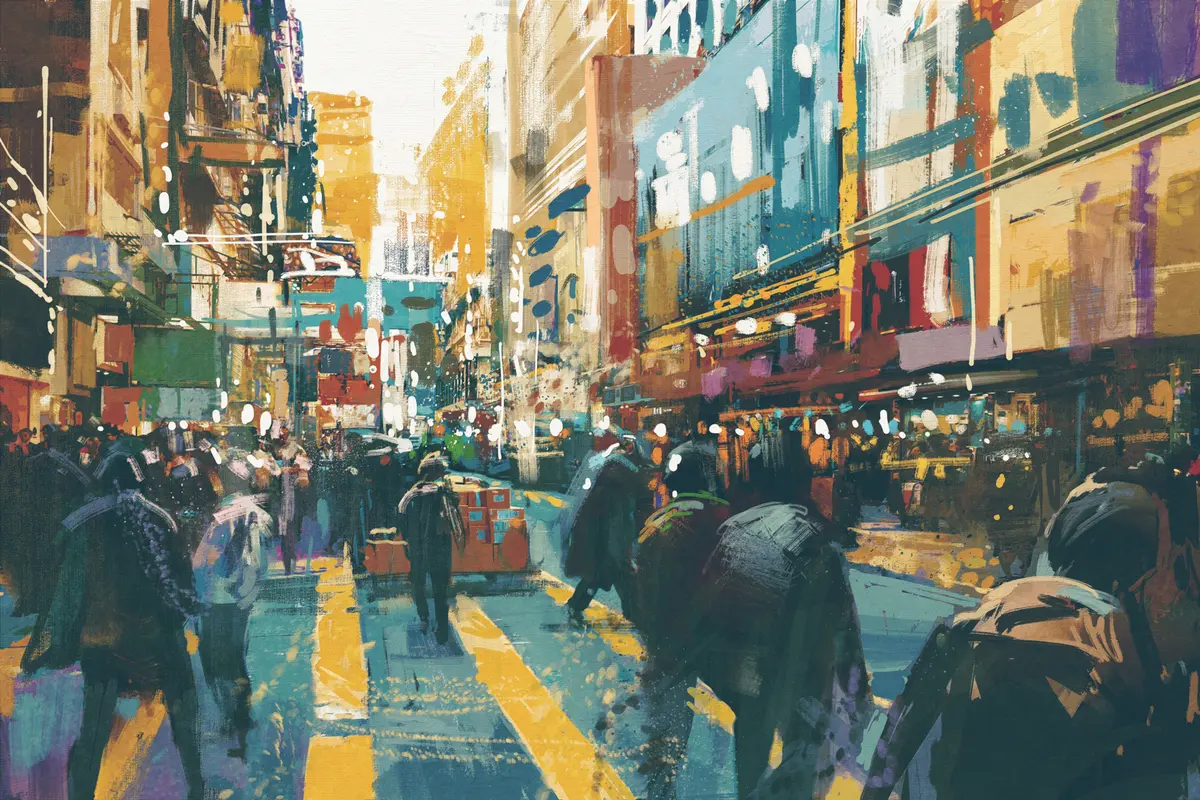 Peintures Une vie urbaine dynamique en mouvement s37108