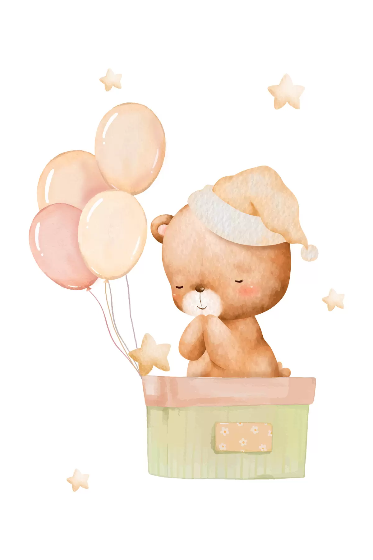 Peinture Ourson mignon avec des ballons et des étoiles Art. s37918