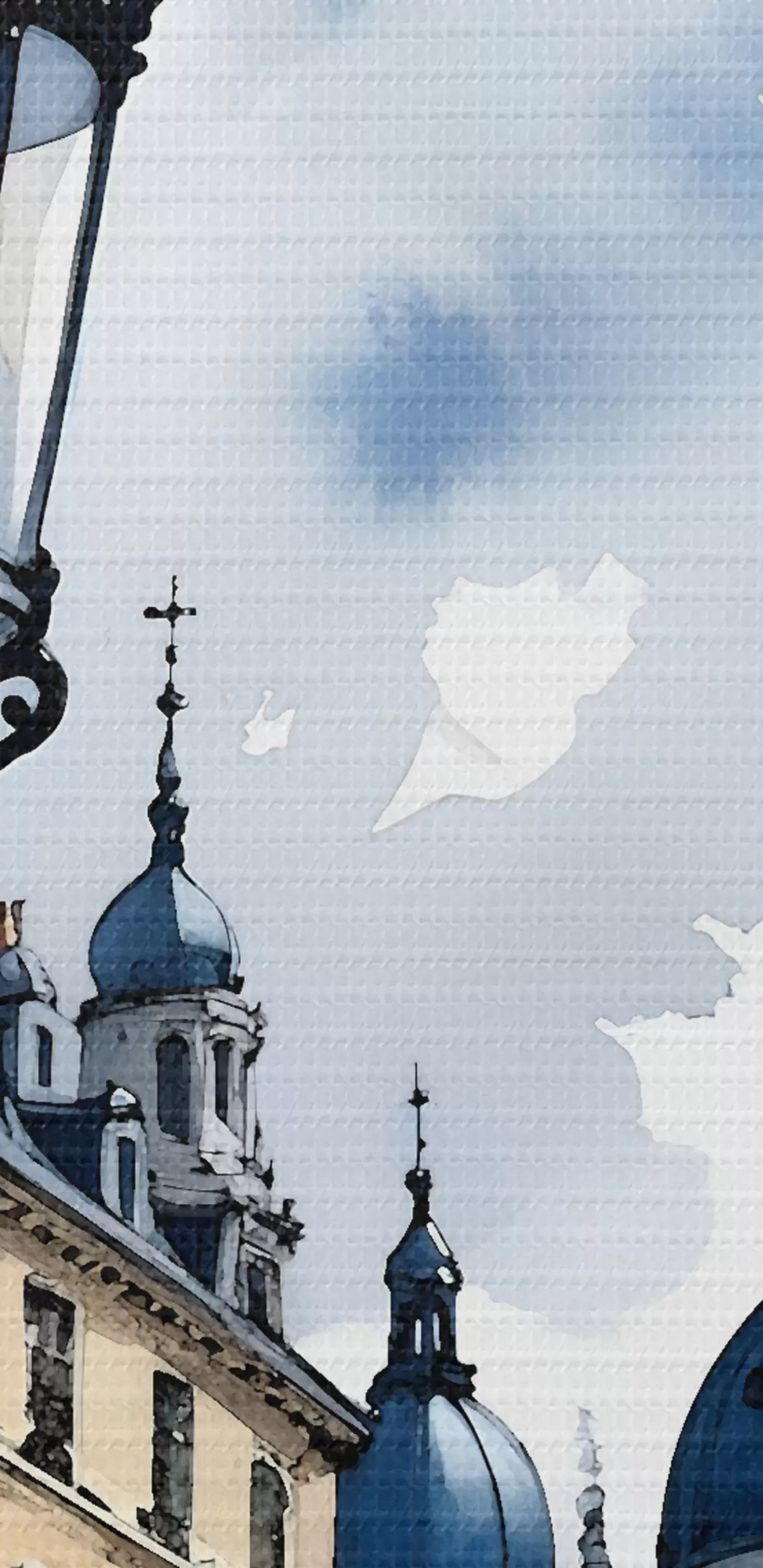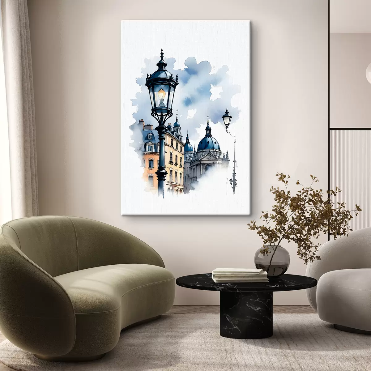Peinture Un lampadaire orné d'un bâtiment en forme de dôme par temps nuageux Art. s38364