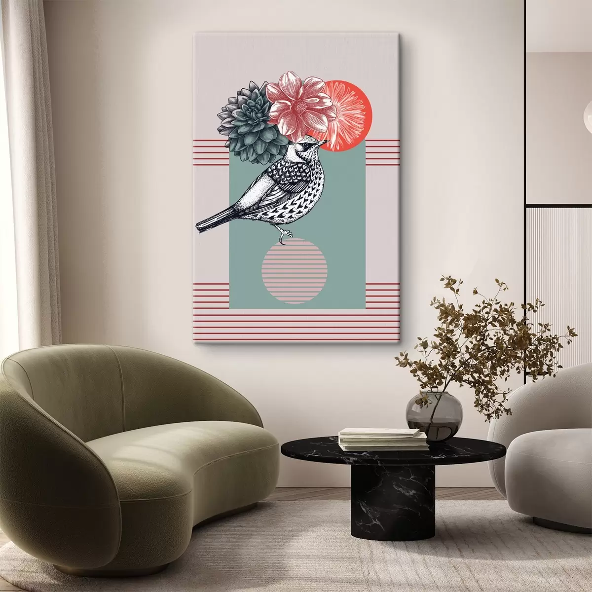 Peintures Un oiseau avec des fleurs sur la tête s38442