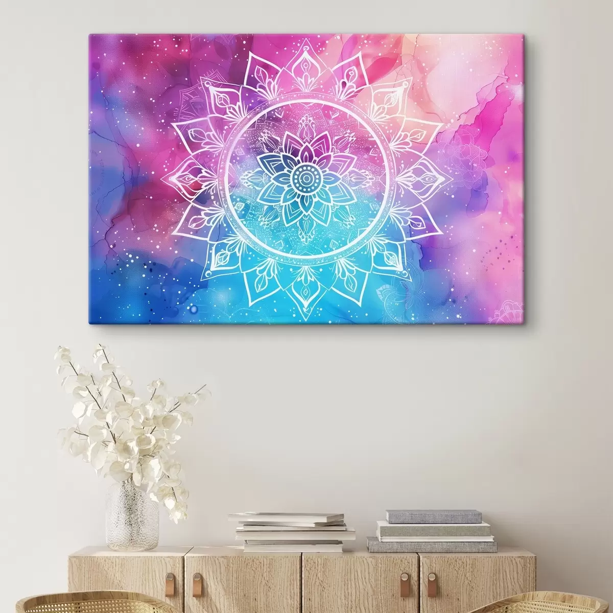 Peinture Un mandala blanc sur fond coloré Art. s38529