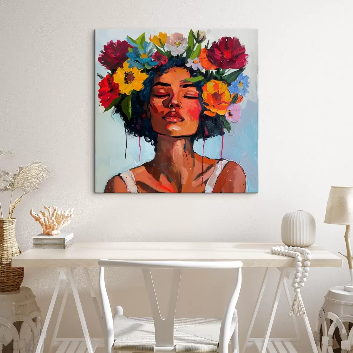 Peinture Peinture d'une femme avec des fleurs dans les cheveux Art. s38575