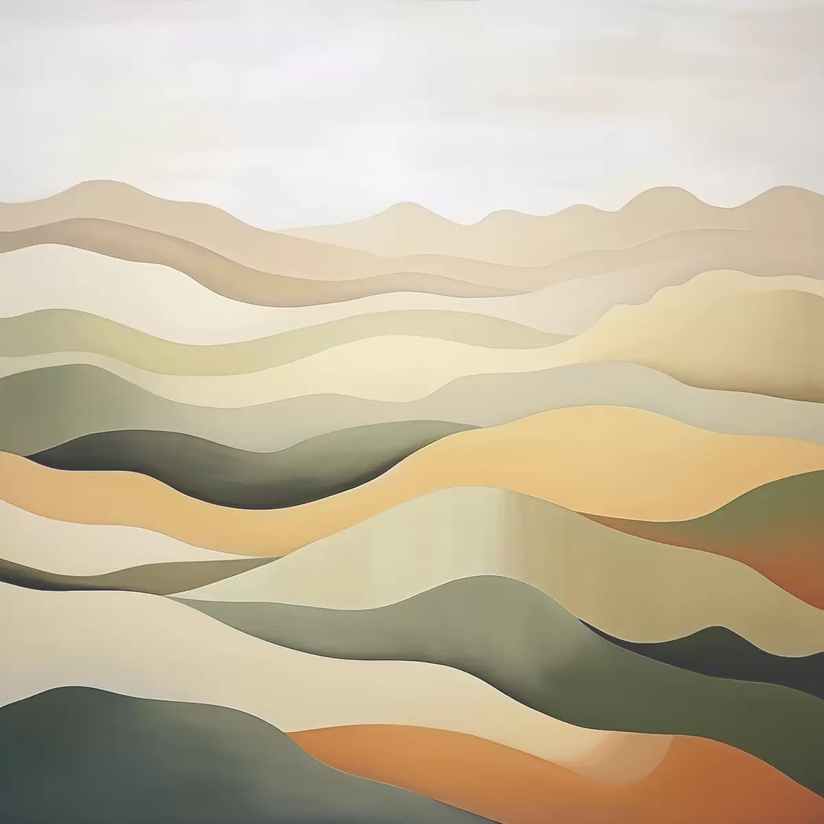 Peinture Collines, paysage abstrait, gouache, vert, ocre, sépia, gris Art. s38952