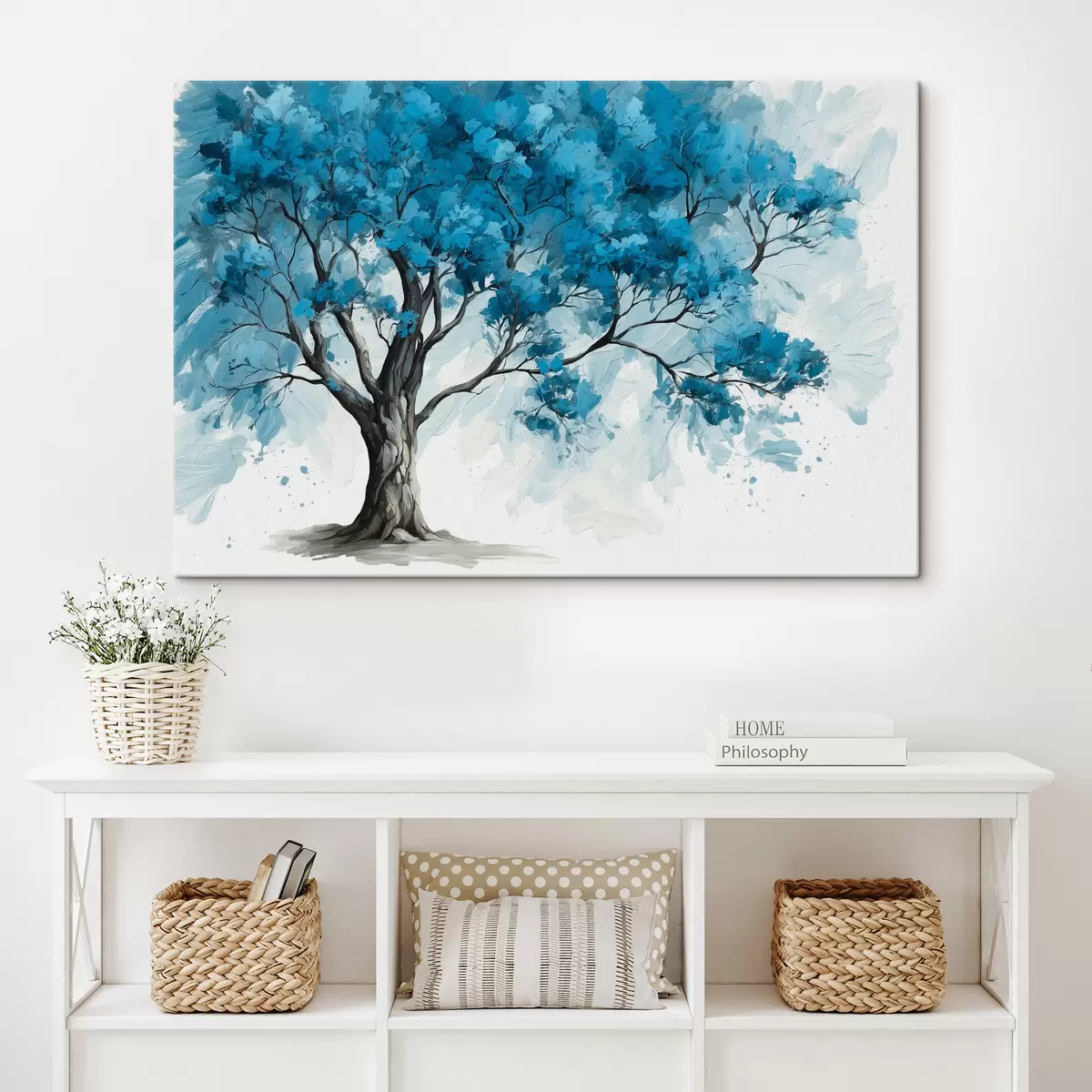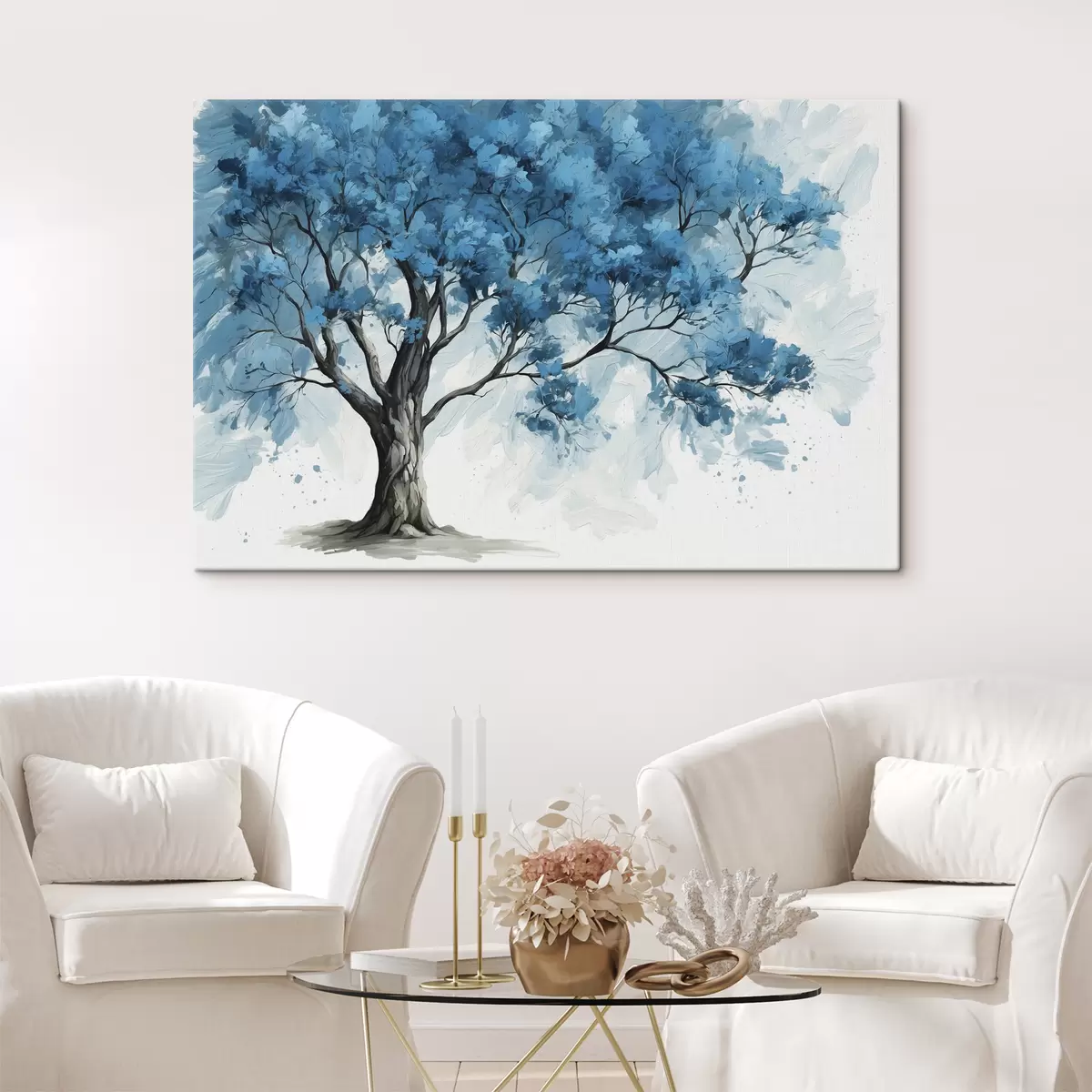 Peintures Arbre à feuilles bleues sur fond blanc s39153