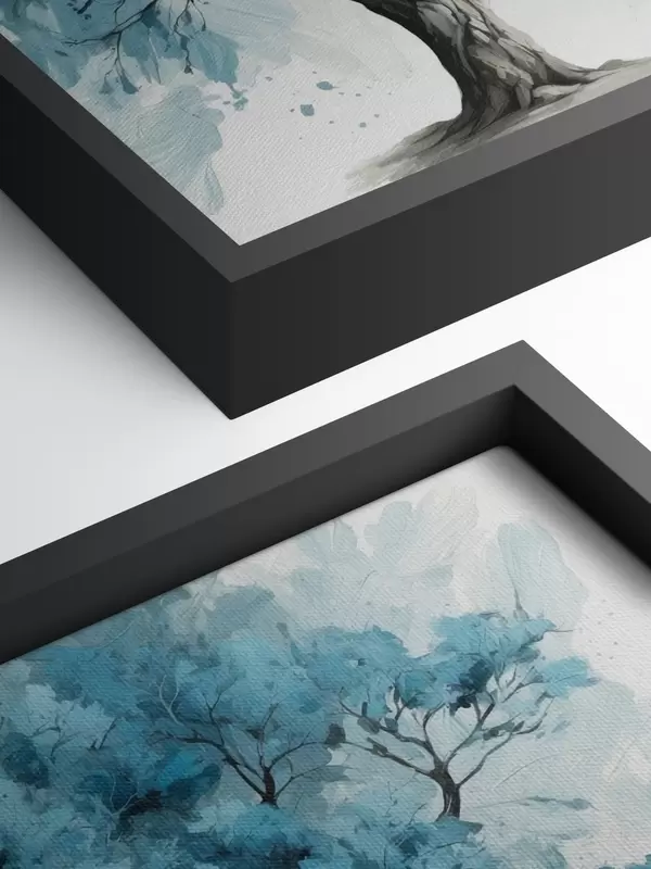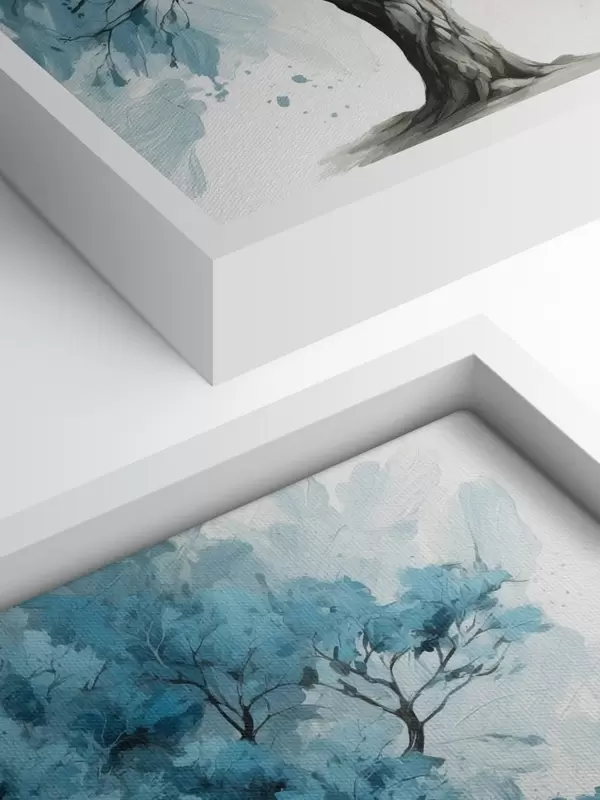 Peinture Arbre à feuilles bleues sur fond blanc Art. s39153