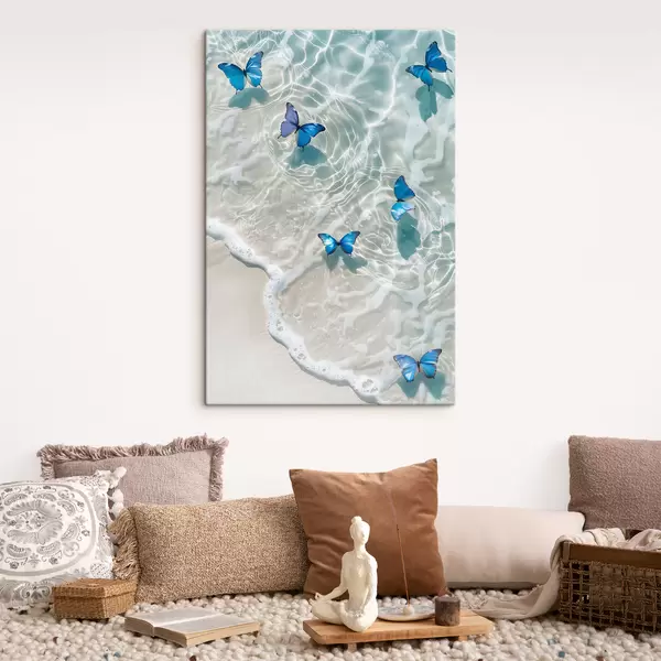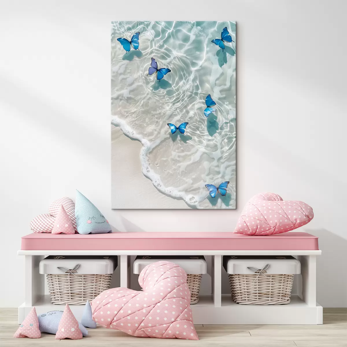 Peinture Papillons bleus sur une vague de mer Art. s39228