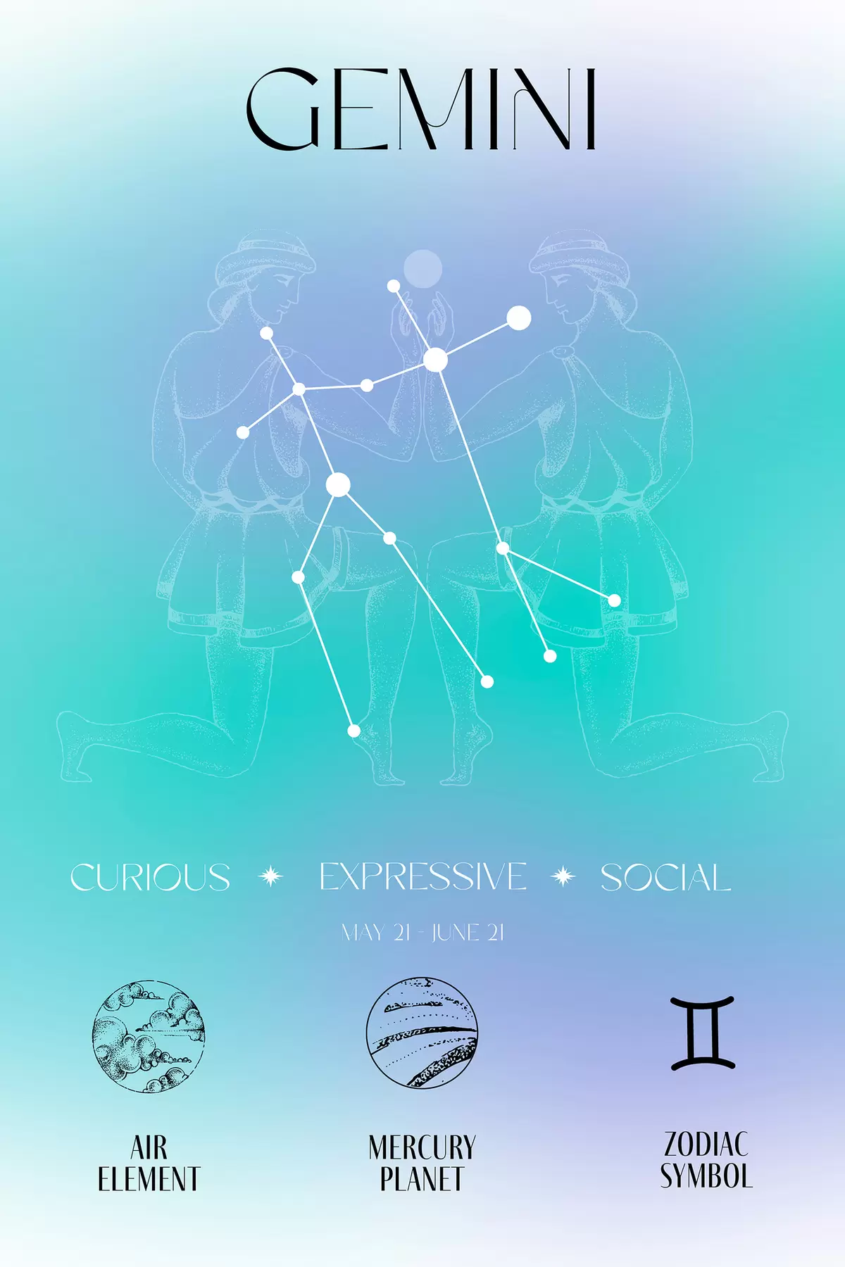 Peintures Signe du zodiaque Gémeaux, constellations, cosmiques, planètes, astrologie, couleurs bleues et violettes s39279