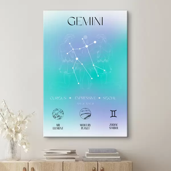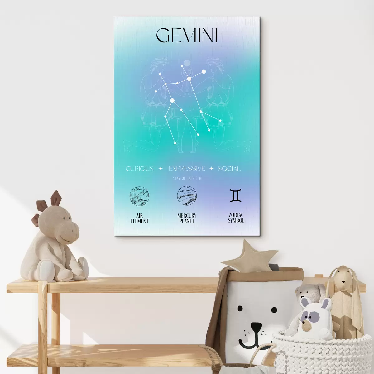 Peinture Signe du zodiaque Gémeaux, constellations, cosmiques, planètes, astrologie, couleurs bleues et violettes Art. s39279