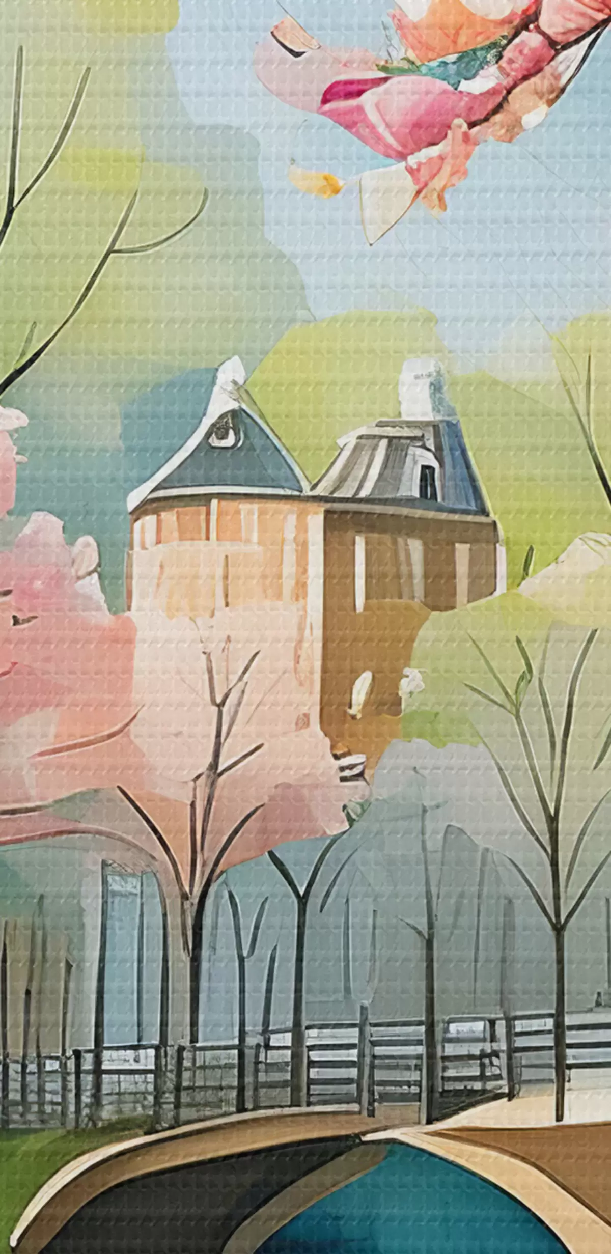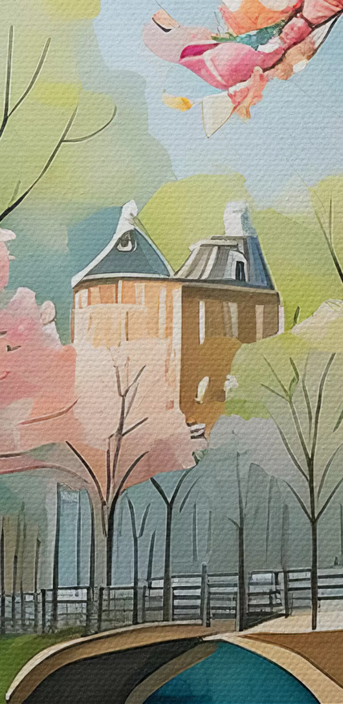 Peinture arbres en fleurs à Amsterdam au printemps Art. s39301
