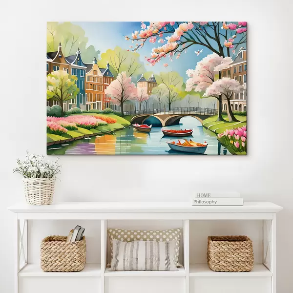 Peinture arbres en fleurs à Amsterdam au printemps Art. s39301