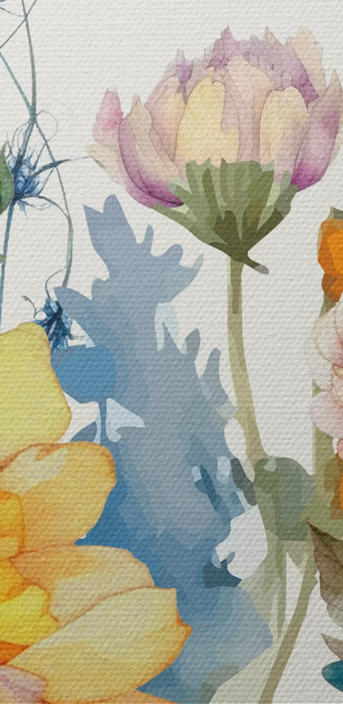 Trois types de matériaux peuvent être commandés : Economic Canvas - matériau dense et durable pour l'impression numérique, identique à la toile de peintre, surface imperméable, reproduction réaliste des détails, matériau à grain moyen. Premium Canvas - la texture ressemble à celle d'une toile de peintre (petits fils entrelacés). Reproduction douce et détaillée de l'image sur une surface mate. Eco-Premium - tissu 100 % coton de haute qualité. Grâce aux fibres naturelles de coton, le matériau est durable et résistant à l'usure. Excellente reproduction des couleurs et des détails.