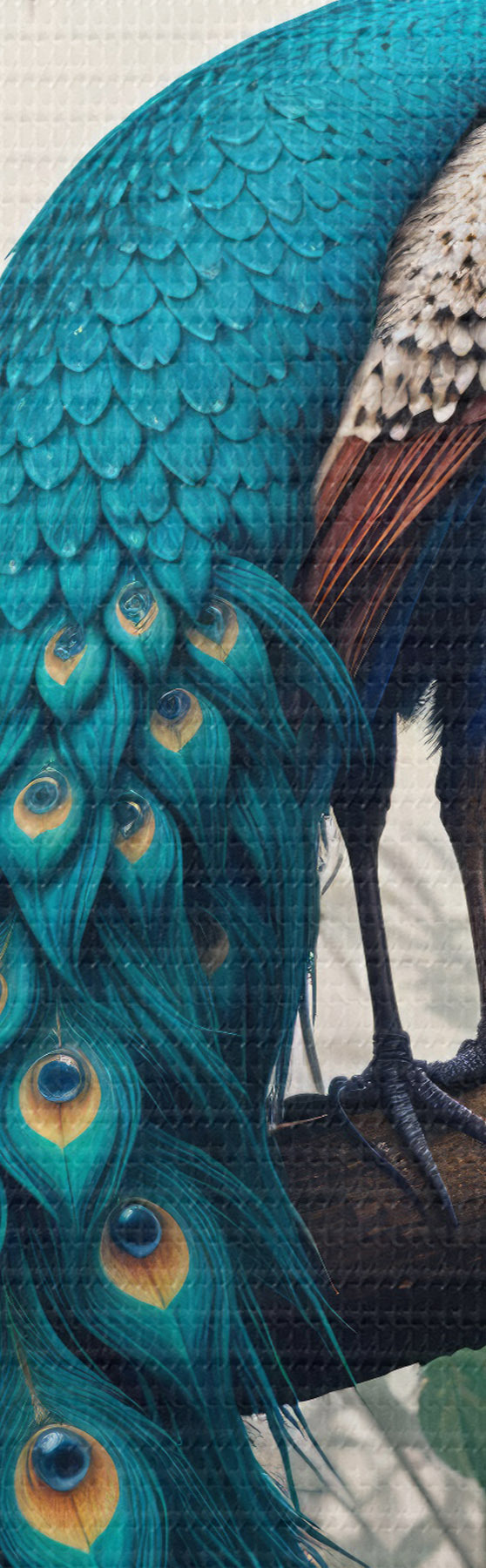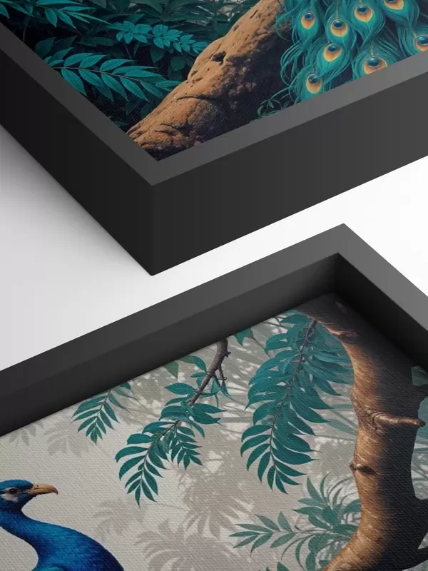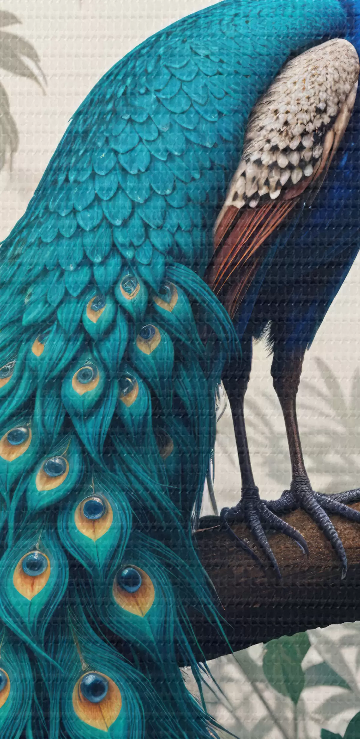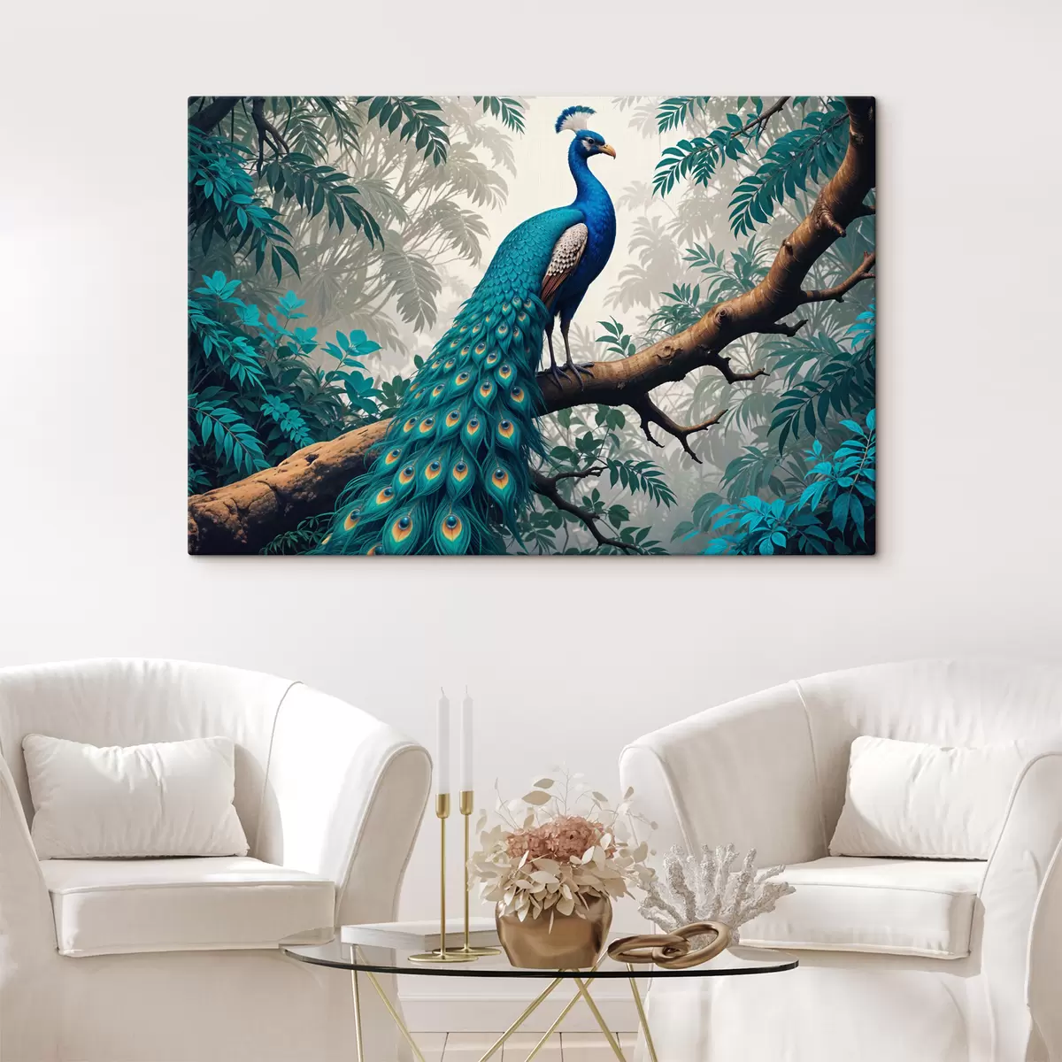 Peinture Un paon bleu vif perché sur une branche d'arbre dans une forêt tropicale luxuriante Art. s39401