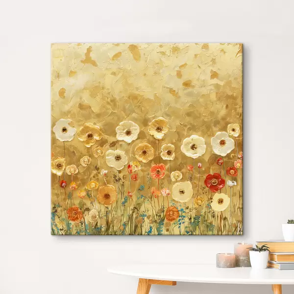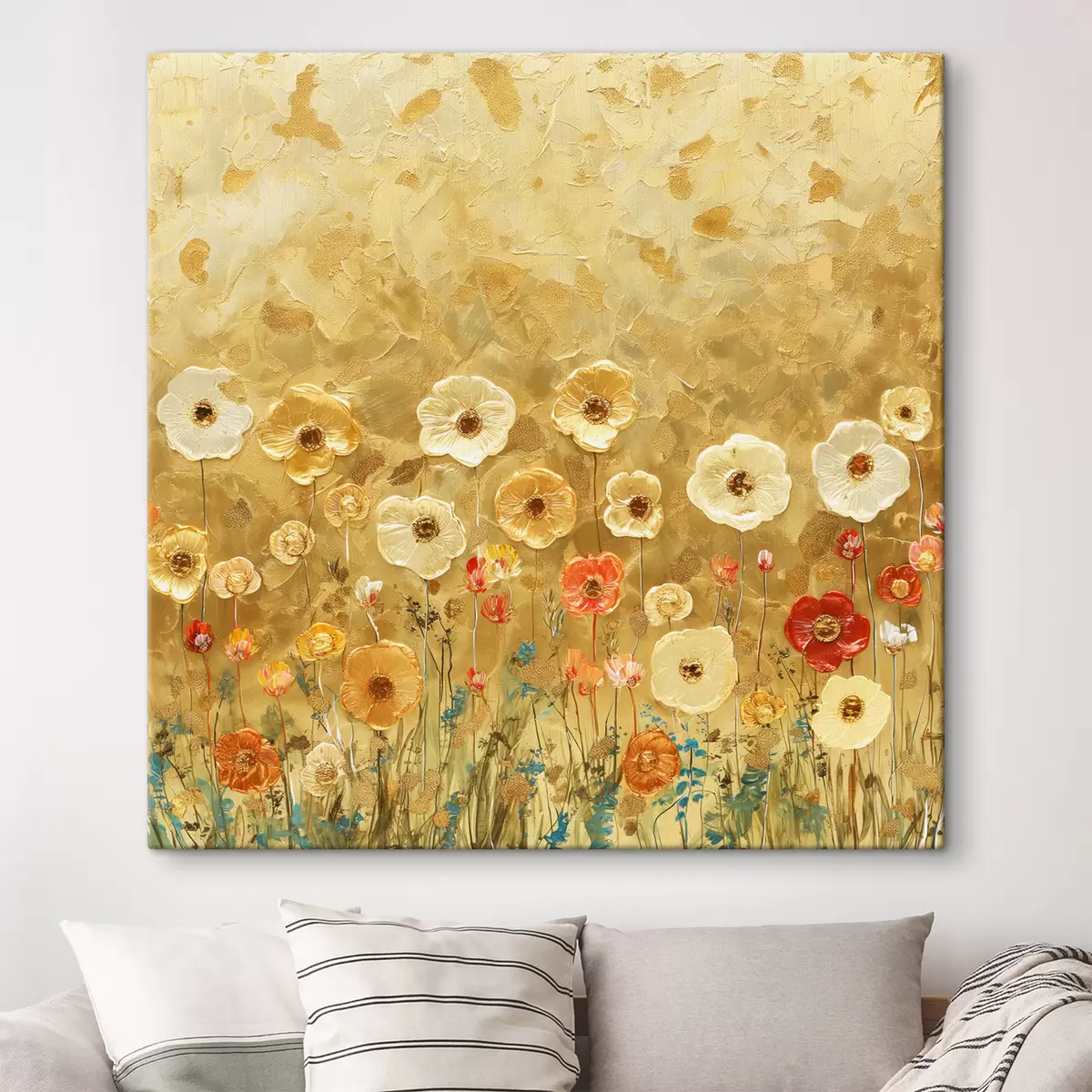 Peinture Prairie de style Klimt : délicates fleurs pastel à la texture fondue Art. s39464