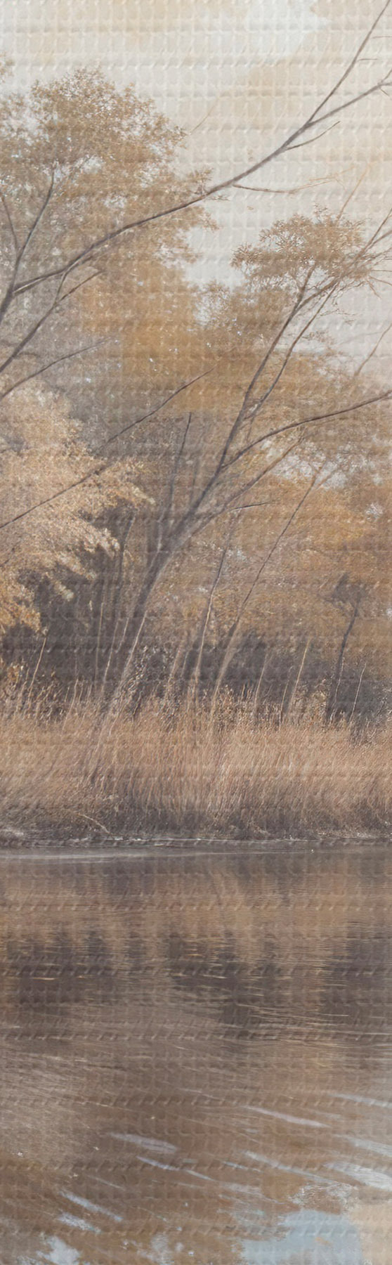 Peinture Paysage d'automne avec un lac calme entouré d'arbres au feuillage orange et jaune vif Art. s39511