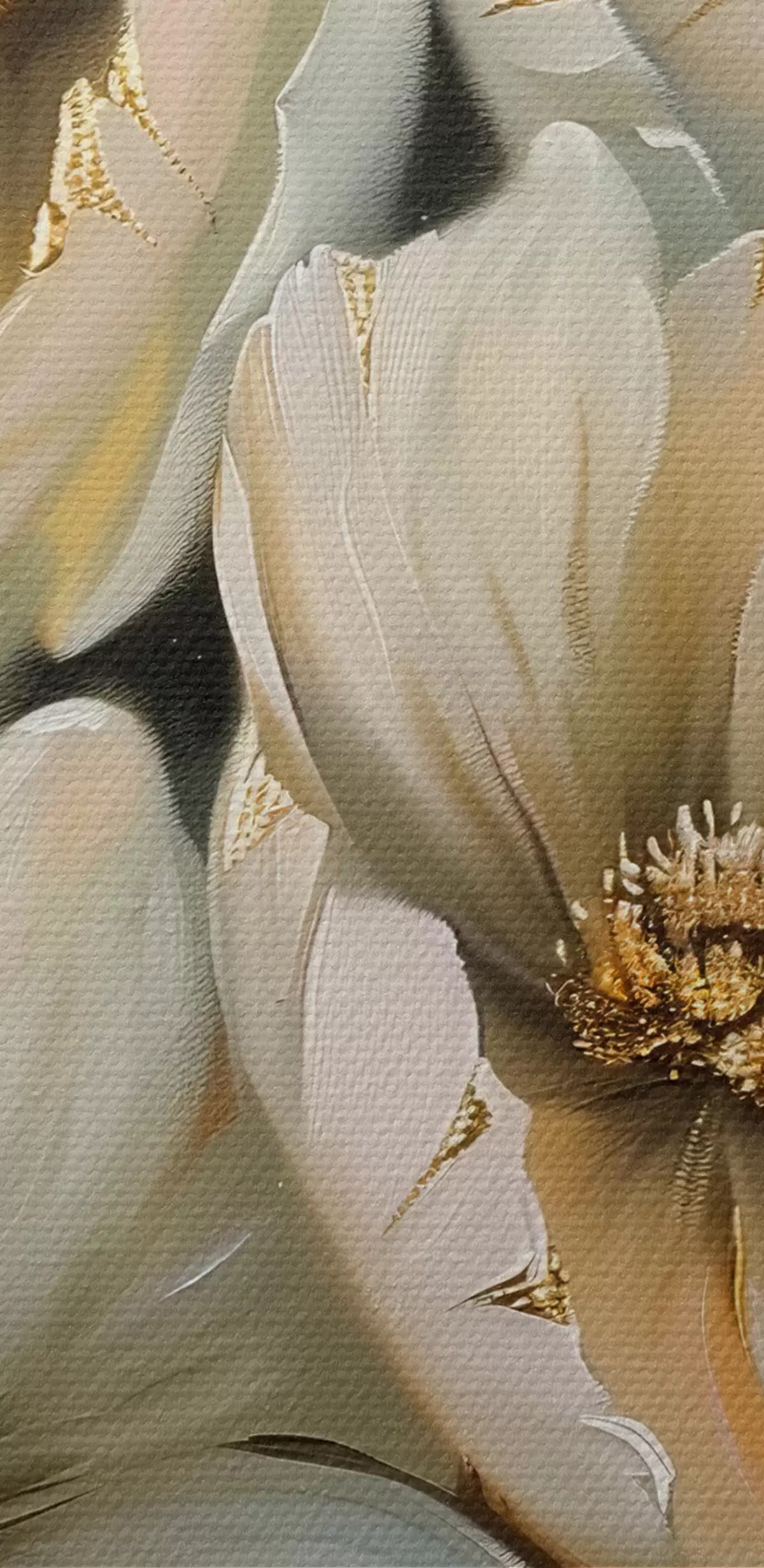 Trois types de matériaux peuvent être commandés : Economic Canvas - matériau dense et durable pour l'impression numérique, identique à la toile de peintre, surface imperméable, reproduction réaliste des détails, matériau à grain moyen. Premium Canvas - la texture ressemble à celle d'une toile de peintre (petits fils entrelacés). Reproduction douce et détaillée de l'image sur une surface mate. Eco-Premium - tissu 100 % coton de haute qualité. Grâce aux fibres naturelles de coton, le matériau est durable et résistant à l'usure. Excellente reproduction des couleurs et des détails.