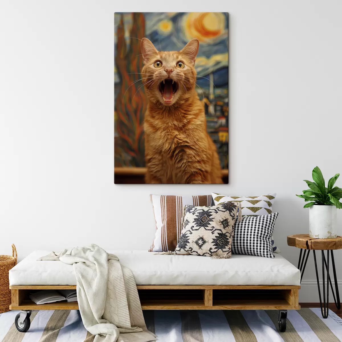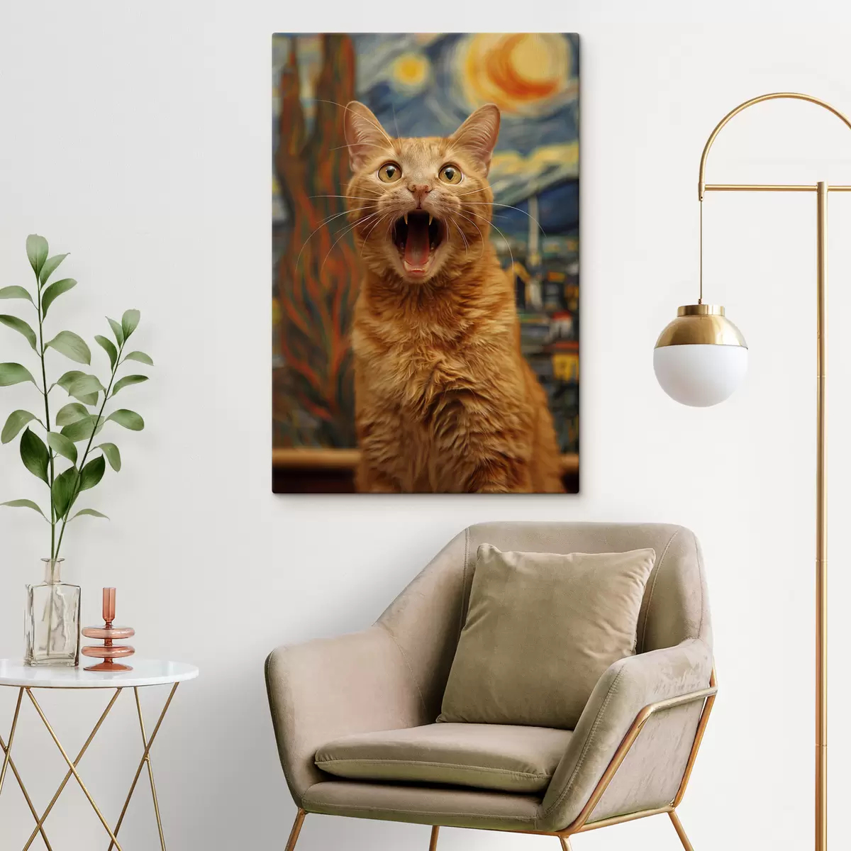 Peintures Peinture de style Van Gogh représentant "Le Cri" avec un chat s39724