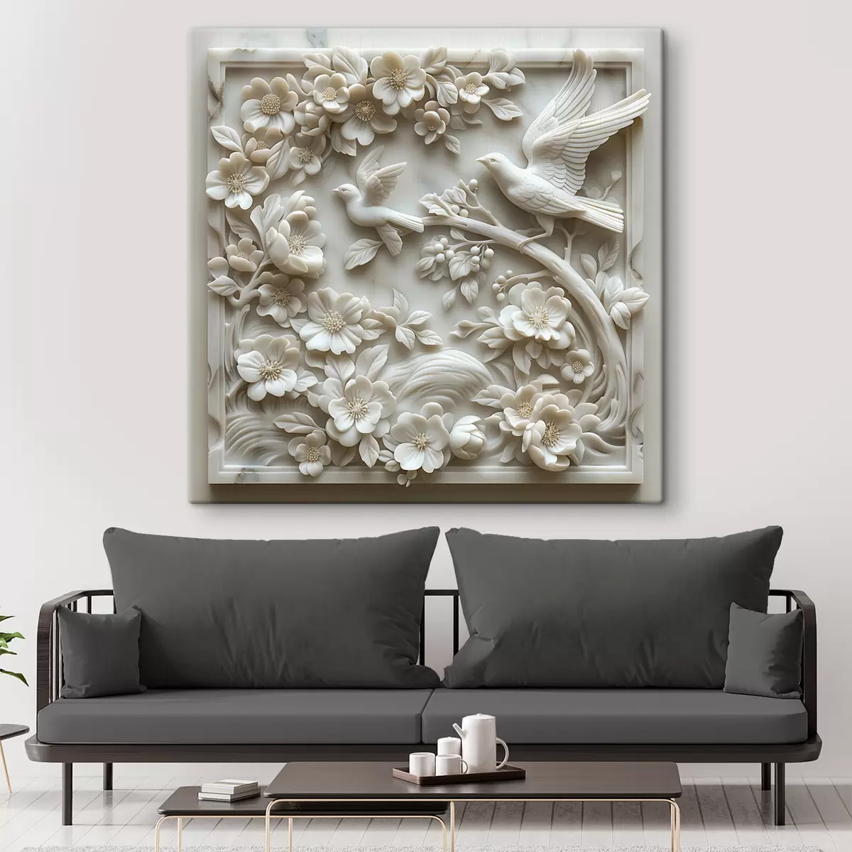 Peintures Jardin en marbre blanc avec bas-relief d'oiseaux et de fleurs s39728
