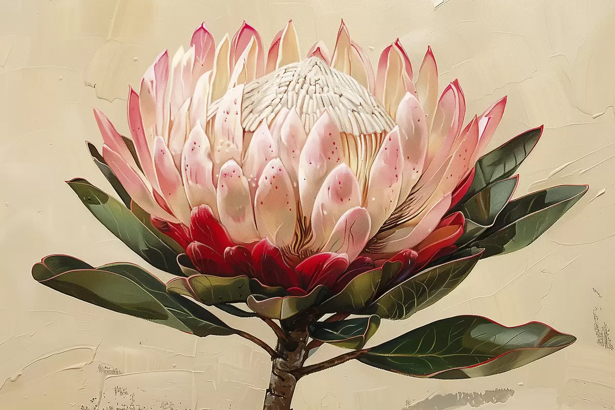 Peinture Fleur de Protea, dessin acrylique, floral, couleurs naturelles douces Art. s39780
