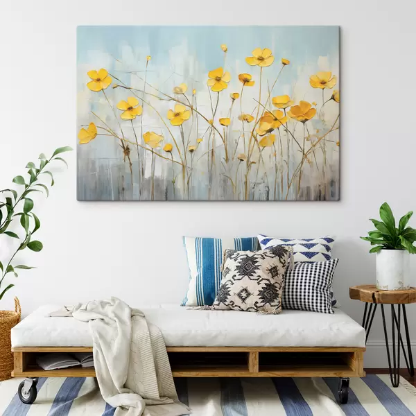 Peinture Petites fleurs jaunes sur une longue peinture à l’huile de tige Art. s39823