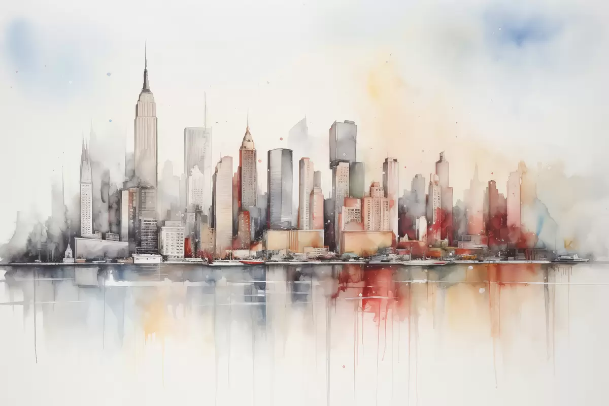 Peintures Vue sur la ville de New York, silhouettes de bâtiments, aquarelle s39828