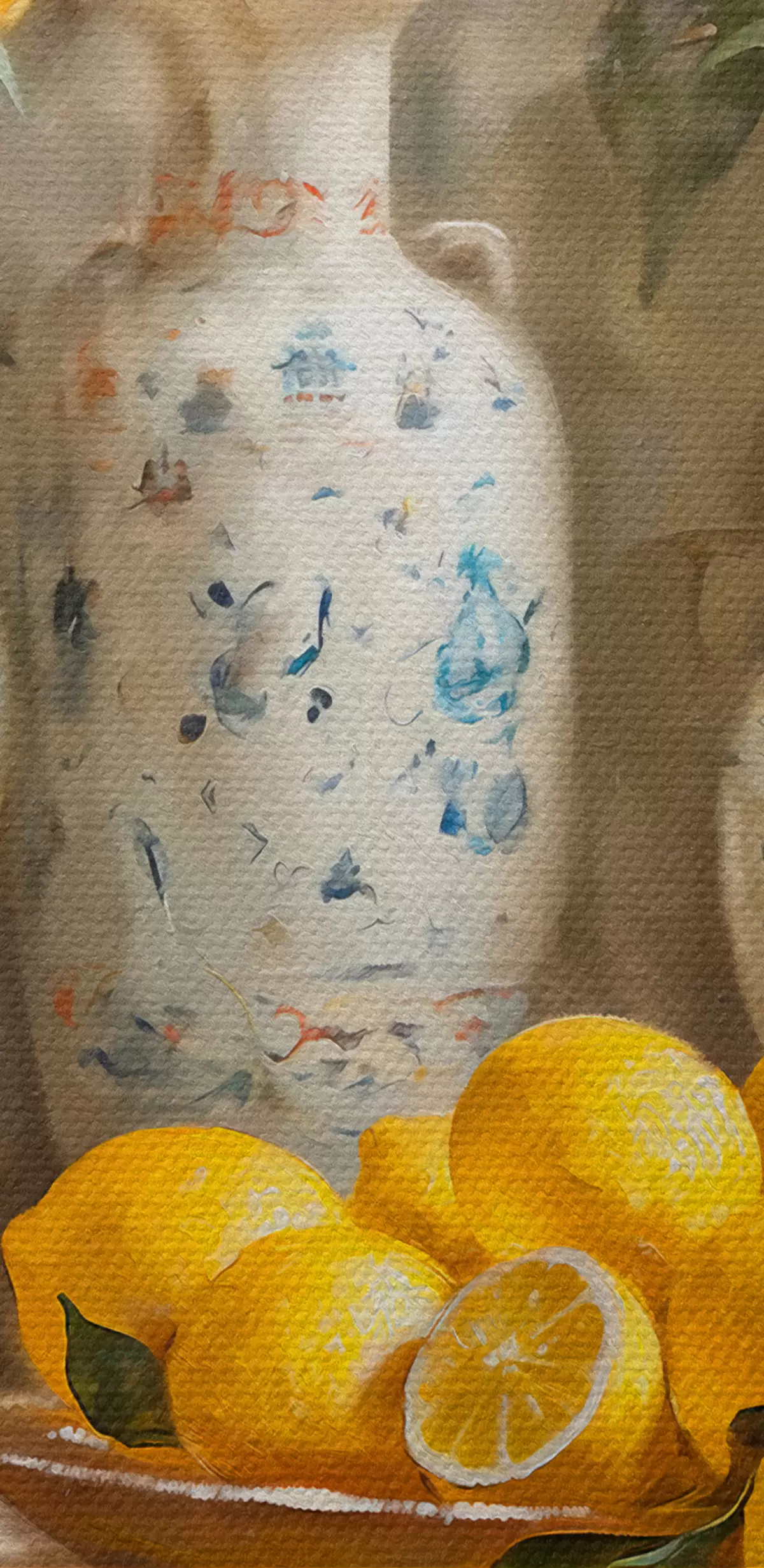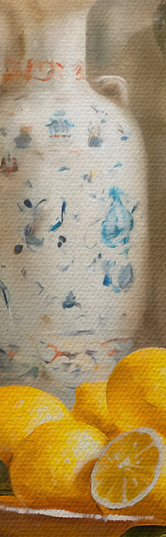 Peinture Citrons et vases vintage sur la table Art. s39833