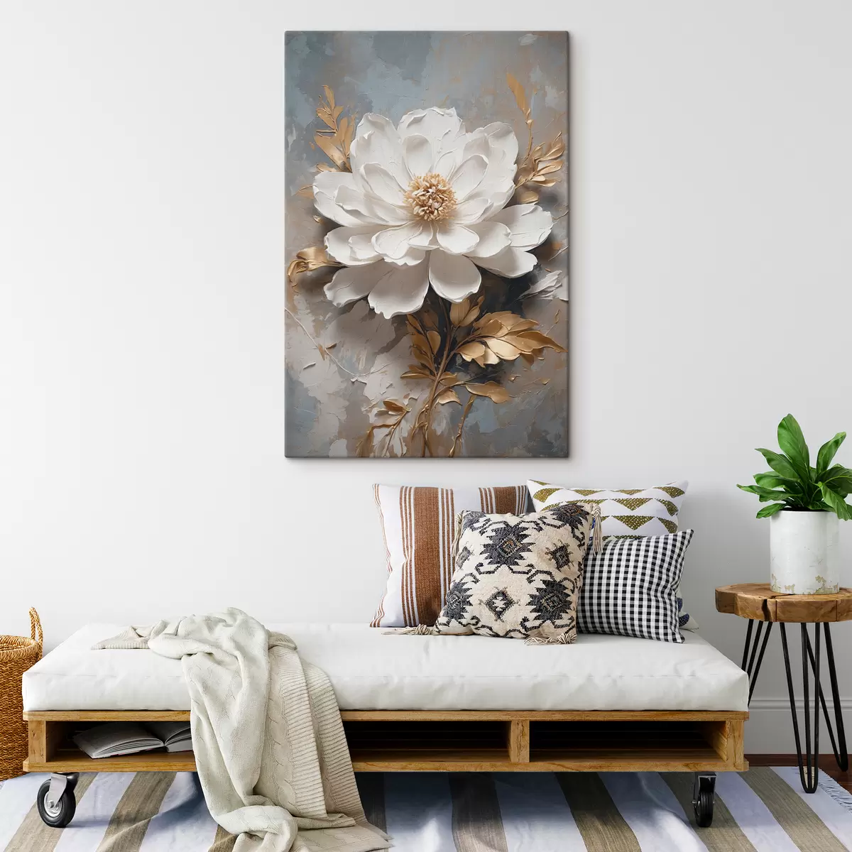 Peinture Fleur blanche avec des tiges sur fond abstrait Art. s39865